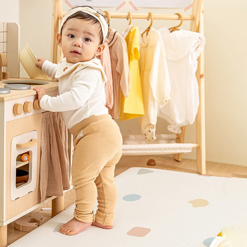 Мягкий, как облако, и надёжный, как броня — этот коврик создан для настоящих непосед. Толстый амортизирующий слой гасит удары и значительно снижает шум от игр. Двусторонний дизайн: нежный пастельный принт для активных игр и лаконичная геометрия для уютного интерьера. Легко моется, не скользит и не сдвигается даже в самый активный день. Идеально для ползания, подвижных игр и дневного сна.
