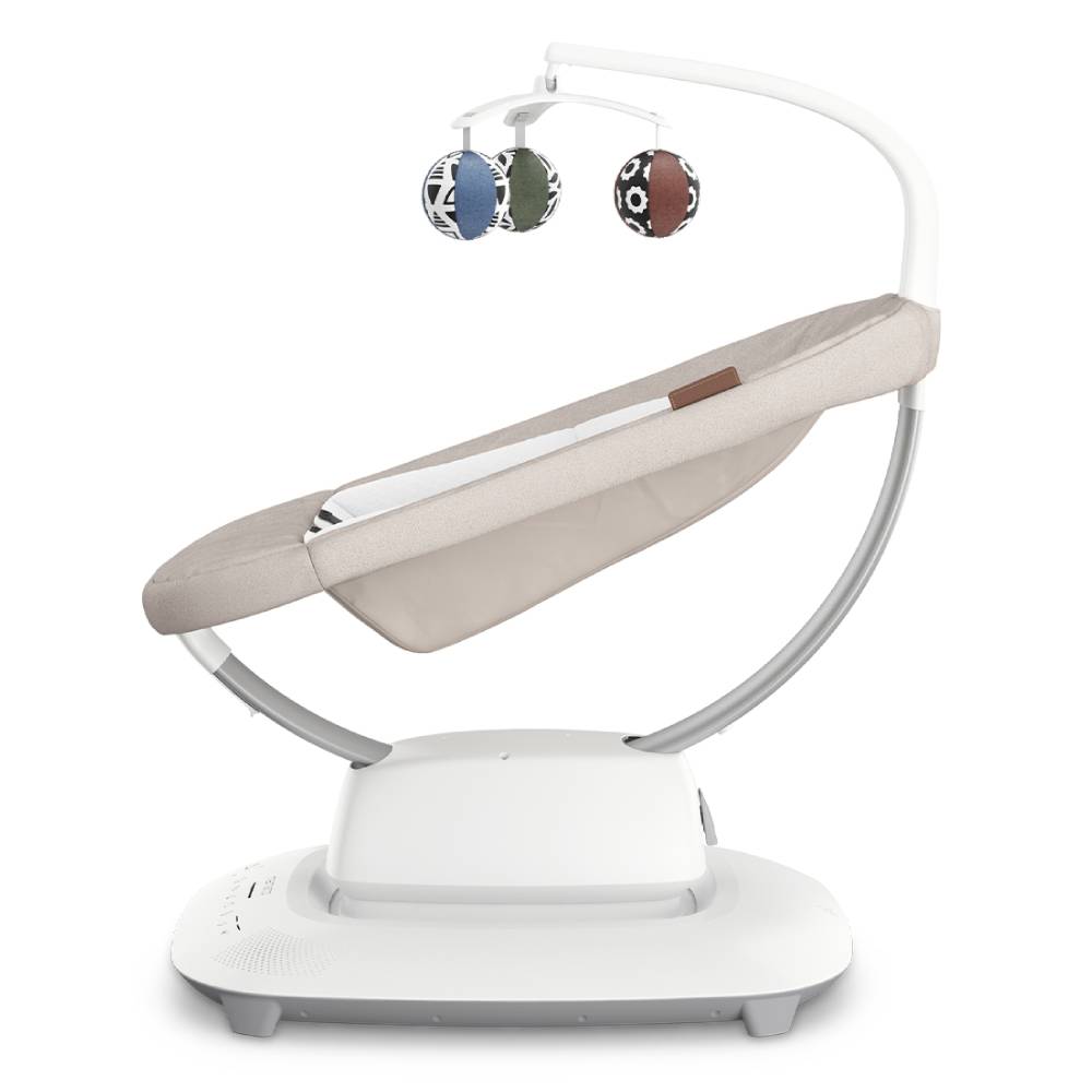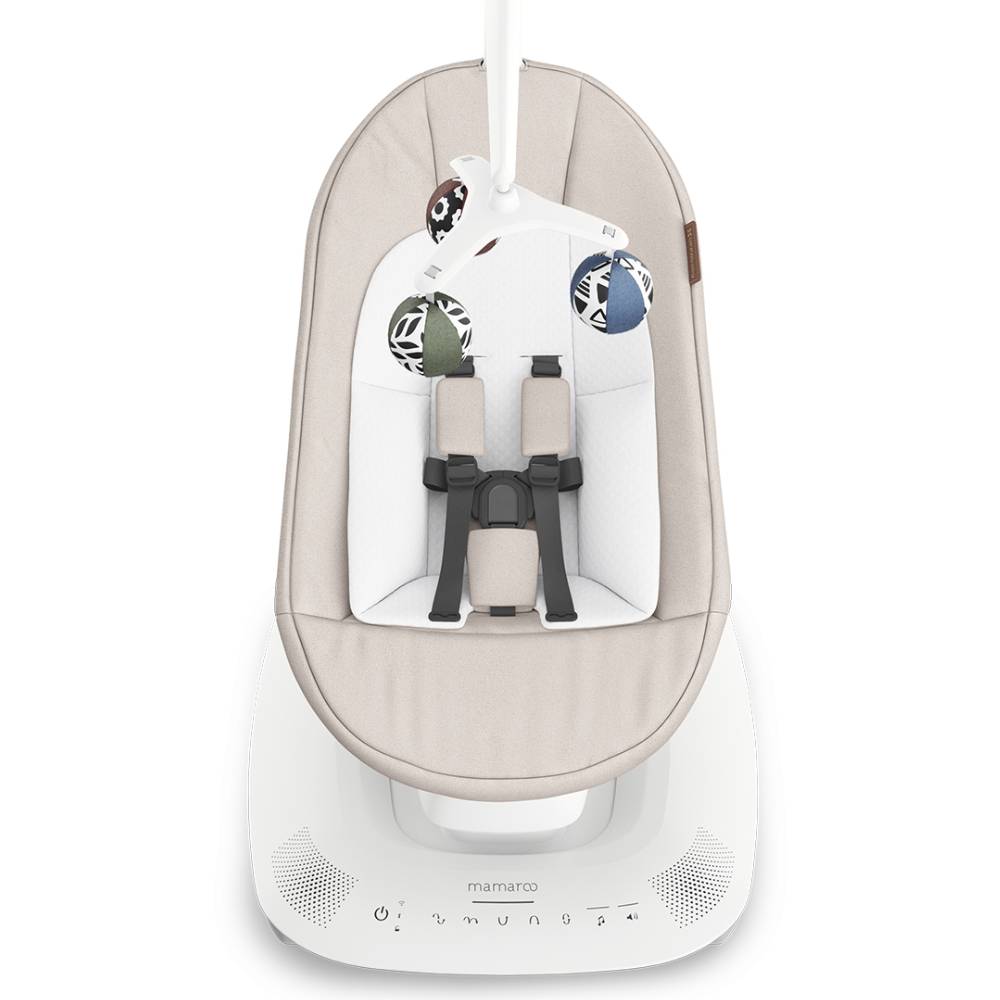 Дополнительная информация: 5 движений (езда на автомобиле, волна, качели, прыжки, колыбель), регулировка скорости (5 уровней), Bluetooth-соединение, встроенные звуки (4 различных успокаивающих звука), возможность воспроизведения собственной музыки, мобиль с игрушками-шариками, сенсорный пользовательский интерфейс, регулировка наклона сиденья, пятиточечные ремни безопасности, съемный вкладыш для новорожденных, функции безопасности - останавливают движение, легко моющиеся ткани, прочная и устойчивая конструкция, работает от адаптера питания (в комплекте), не требует батареек.