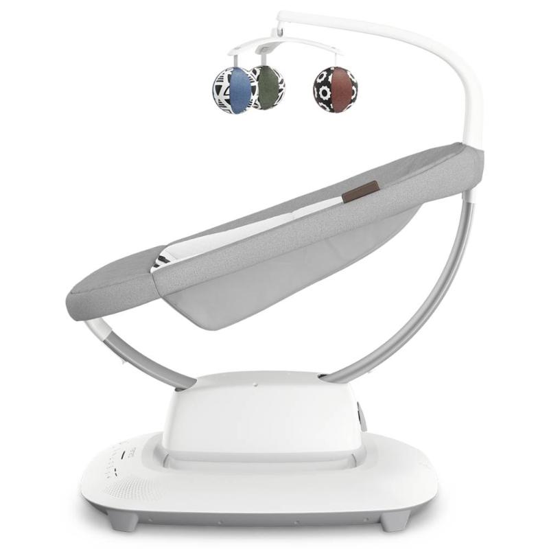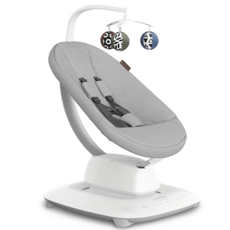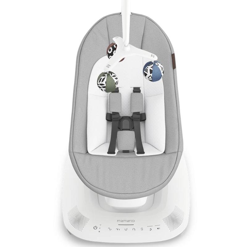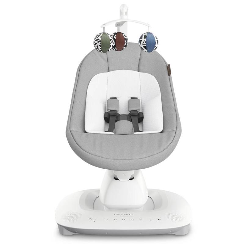 Дополнительная информация: 5 движений (езда на автомобиле, волна, качели, прыжки, колыбель), регулировка скорости (5 уровней), Bluetooth-соединение, встроенные звуки (4 различных успокаивающих звука), возможность воспроизведения собственной музыки, мобиль с игрушками-шариками, сенсорный пользовательский интерфейс, регулировка наклона сиденья, пятиточечные ремни безопасности, съемный вкладыш для новорожденных, функции безопасности - останавливают движение, легко моющиеся ткани, прочная и устойчивая конструкция, работает от адаптера питания (в комплекте), не требует батареек.