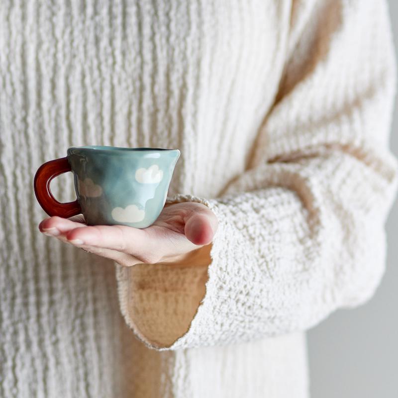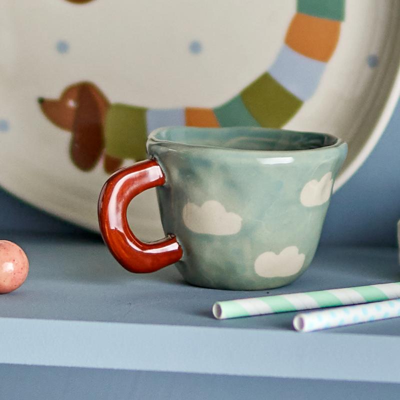 Маленькая кружка с большим настроением. Голубые облака словно плывут по белоснежной поверхности, а яркая розовая ручка добавляет озорной контраст. Керамика расписана вручную, поэтому рисунок на вашей кружке будет единственным в своём роде. Компактный размер идеален для детского какао или взрослого эспрессо. Скандинавский дизайн датского бренда умеет быть одновременно милым и стильным.