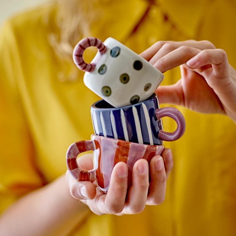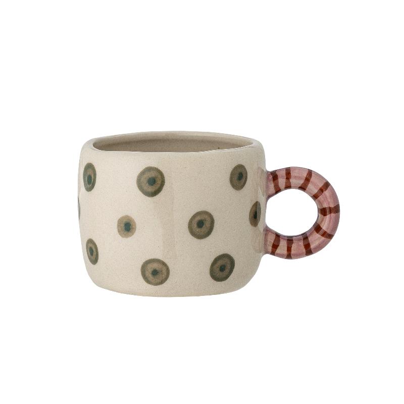 Зелёные горошины на белом фоне, яркая ручка и чуть больший объём — 115 мл. Nini создана для утреннего кофе, когда хочется начать день с чего-то радостного и простого. Керамика приятная на ощупь, а рисунок выглядит живо, будто его только что нанесли. Эта кружка не потеряется на полке среди обычной посуды — она слишком характерная, чтобы остаться незамеченной.