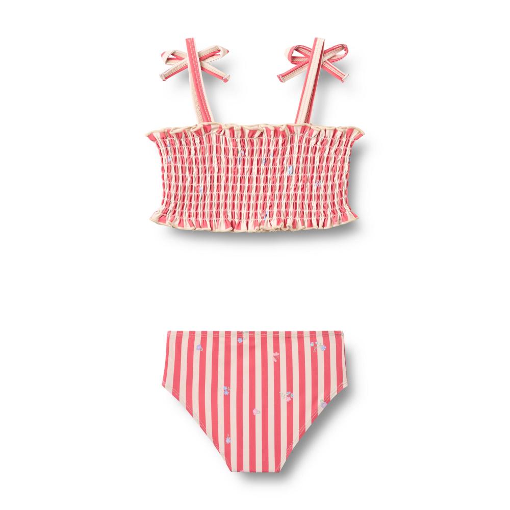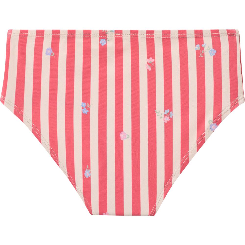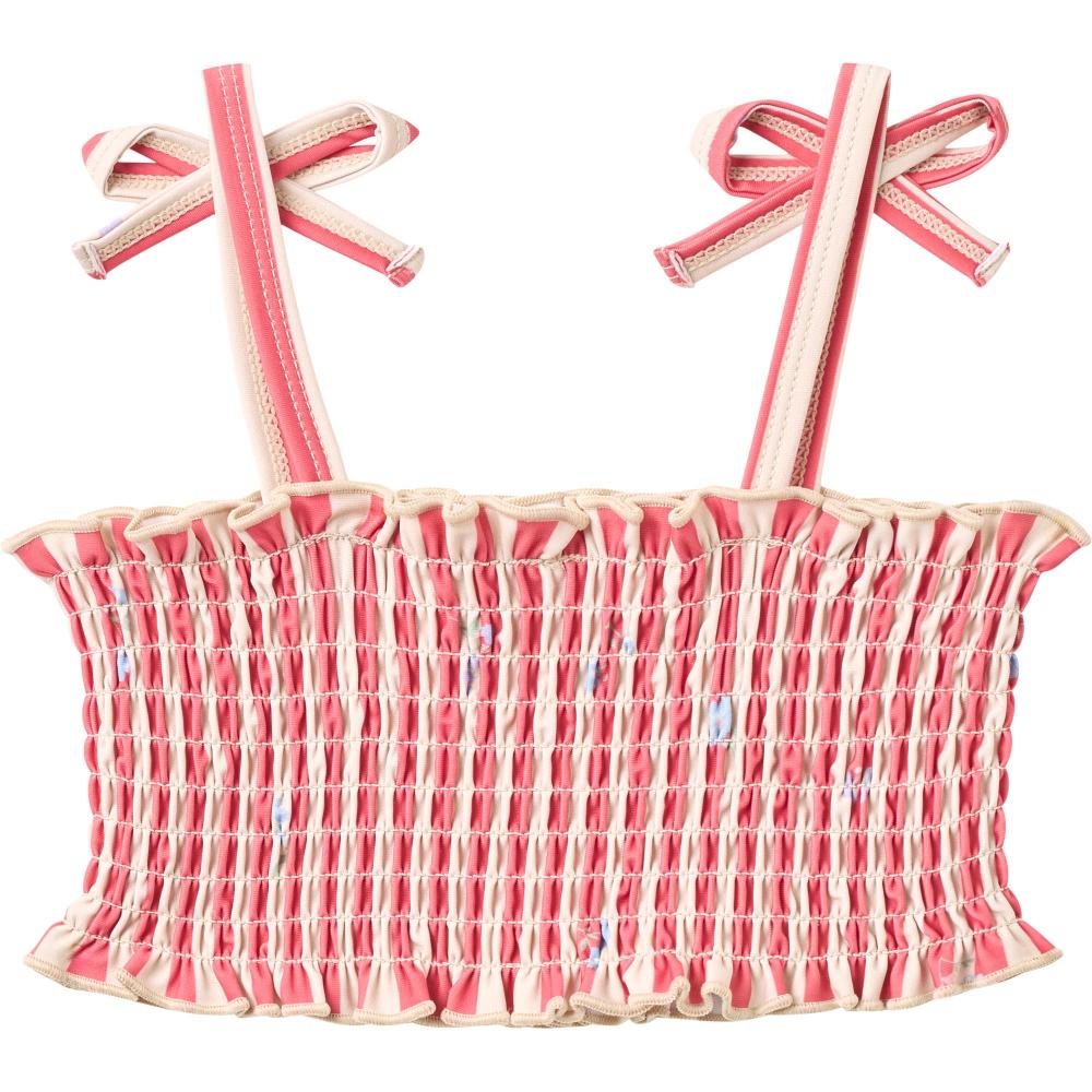 Раздельный купальник с красными полосками и цветами. Верх на завязках регулируется. Трусики с удобной посадкой. Быстросохнущая ткань. Эластичный материал тянется, не сковывает движения. Яркий рисунок от бренда. Подходит для пляжа, бассейна, игр у воды. Устойчив к хлору и соленой воде. Легко стирается. Комфортный для плавания и активных игр. Красивый летний дизайн. Для девочек.