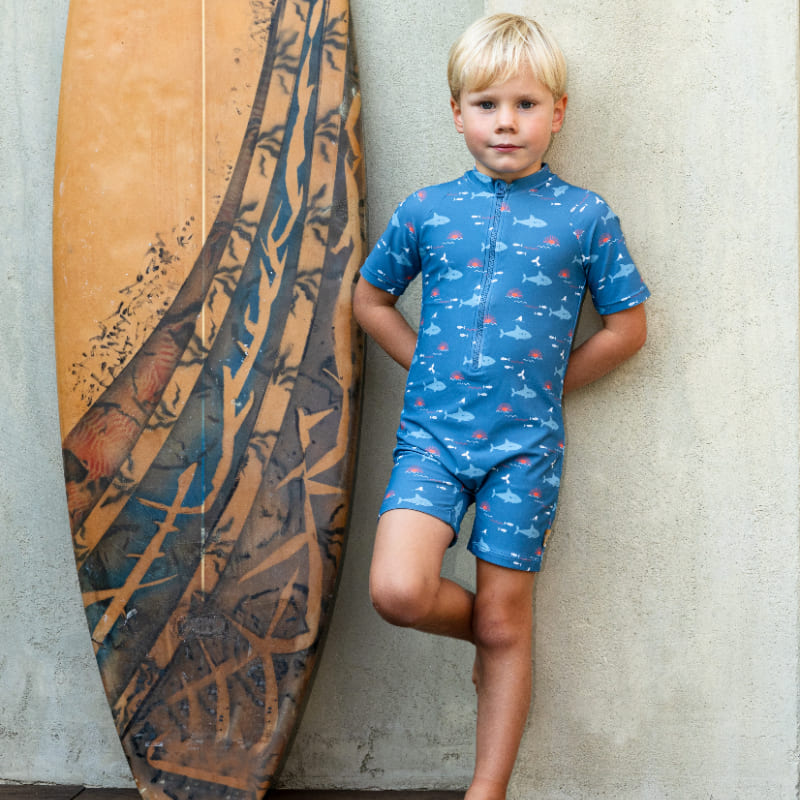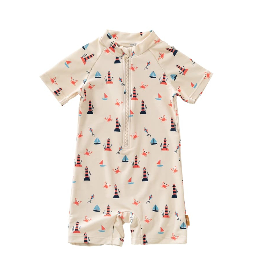 Функциональный и стильный купальник защищает не только от воды, но и от ультрафиолета. Длинные рукава и высокий ворот обеспечивают защиту от солнца даже в самый жаркий день. Мягкий материал не стесняет движений, быстро сохнет и комфортен к телу. Принт с маяками делает модель особенно уютной — словно напоминает о тёплых морских днях. Подходит для пляжа, бассейна и активных игр на солнце.