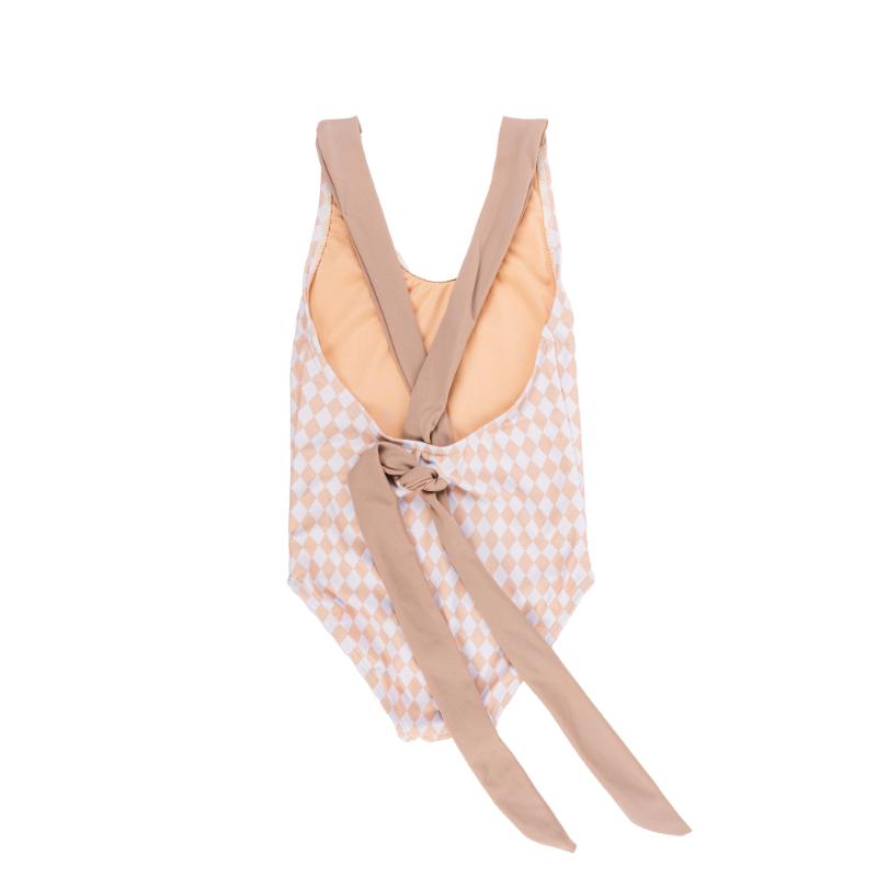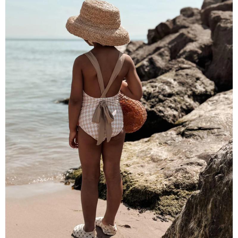 Милый купальник с бантом, который можно завязать по размеру. Лента на спине добавляет женственности и помогает подогнать крой. Хорошо тянется, не давит на тело. Надёжные лямки фиксируются на плечах. Подкладка делает носку комфортной весь день. Материал быстро высыхает на солнце. Очаровательный принт с маргаритками радует глаз. Ваша дочка будет в восторге от этого купальника.