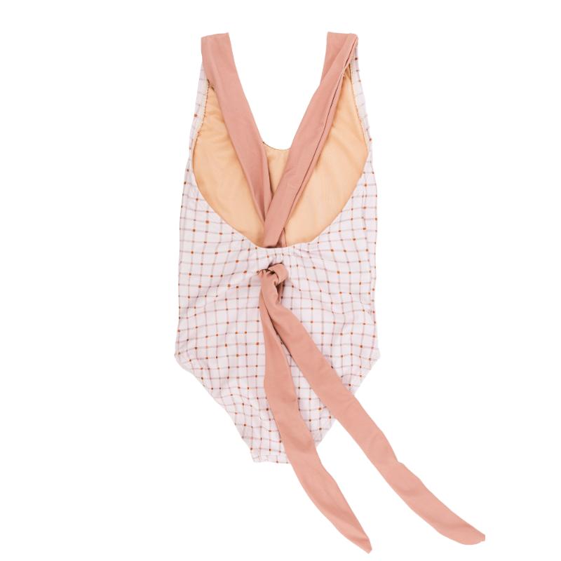 Стильный купальник с завязками на спине, которые регулируются под нужную посадку. Хорошо тянется, не сковывает движений при плавании. Подходит для долгих купаний — не натирает кожу даже после нескольких часов в воде. Надёжные лямки не сползают с плеч. Современный геометрический принт выглядит модно и необычно. Ваша дочка будет чувствовать себя уверенно на любом пляже.