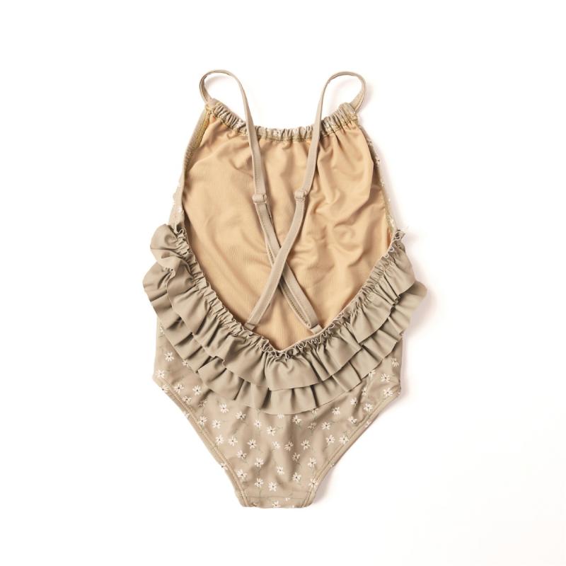 Купальник с нежными рюшами на бретелях для юных модниц. Воланы создают романтичный образ, добавляя особого шарма. Удобный крой позволяет свободно двигаться и плавать. Лямки надёжно держатся, не сползают. Подкладка делает купальник комфортным для длительной носки. Быстро высыхает после воды. Принт с маргаритками выглядит нежно и мило. Прекрасный выбор для пляжных каникул.