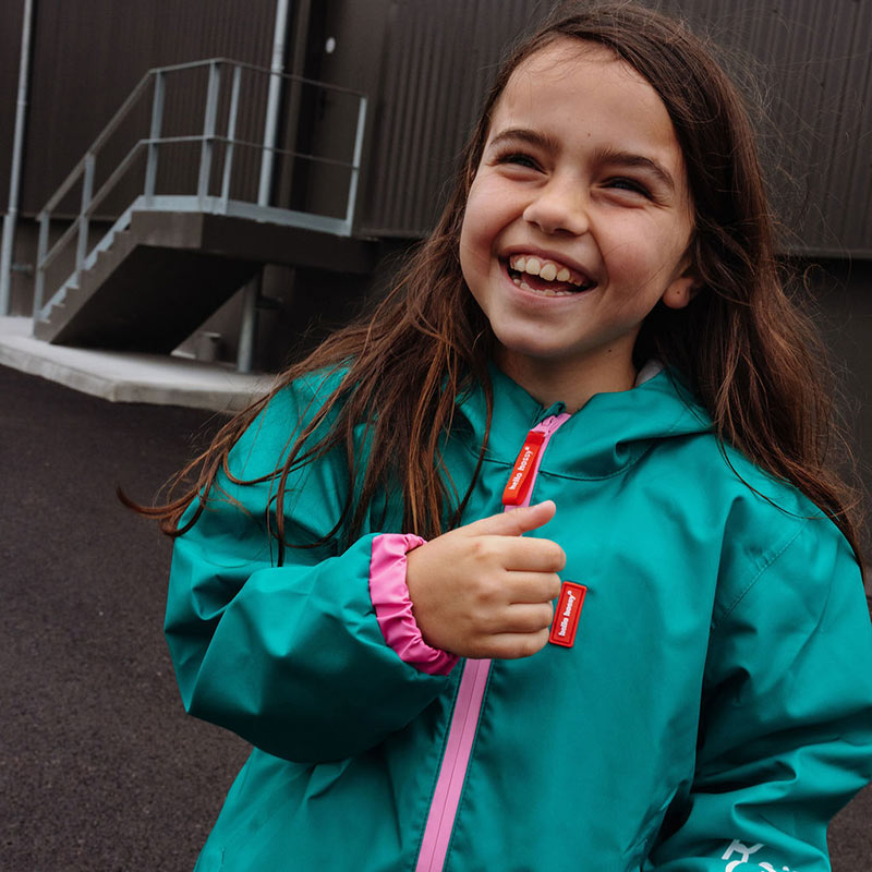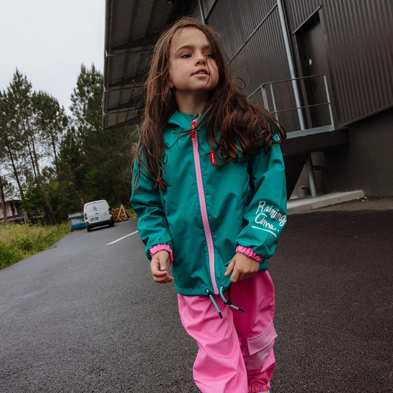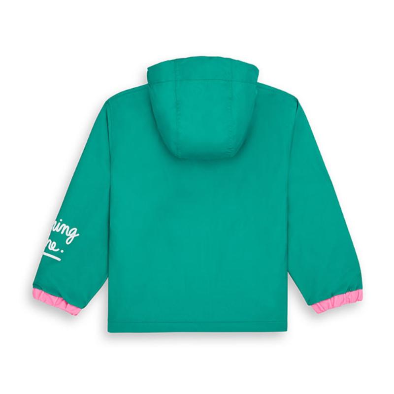 Куртка насыщенного изумрудного оттенка с водонепроницаемым покрытием. Застёжка на молнию защищает от ветра. Капюшон фиксируется кнопками или шнурком. Боковые карманы на молниях сохранят мелочи сухими. Манжеты с резинкой не пропускают воду. Куртка плотно сидит по фигуре, в отличие от свободного пончо, что удобно для активных игр.