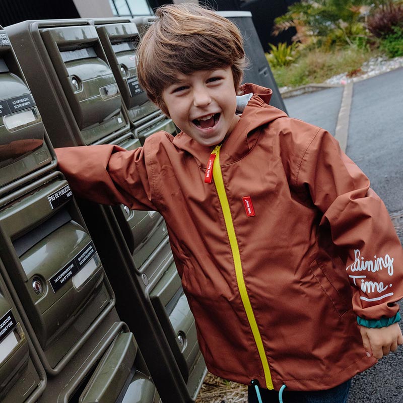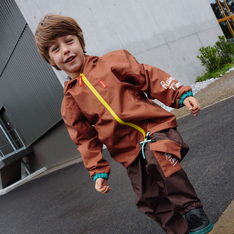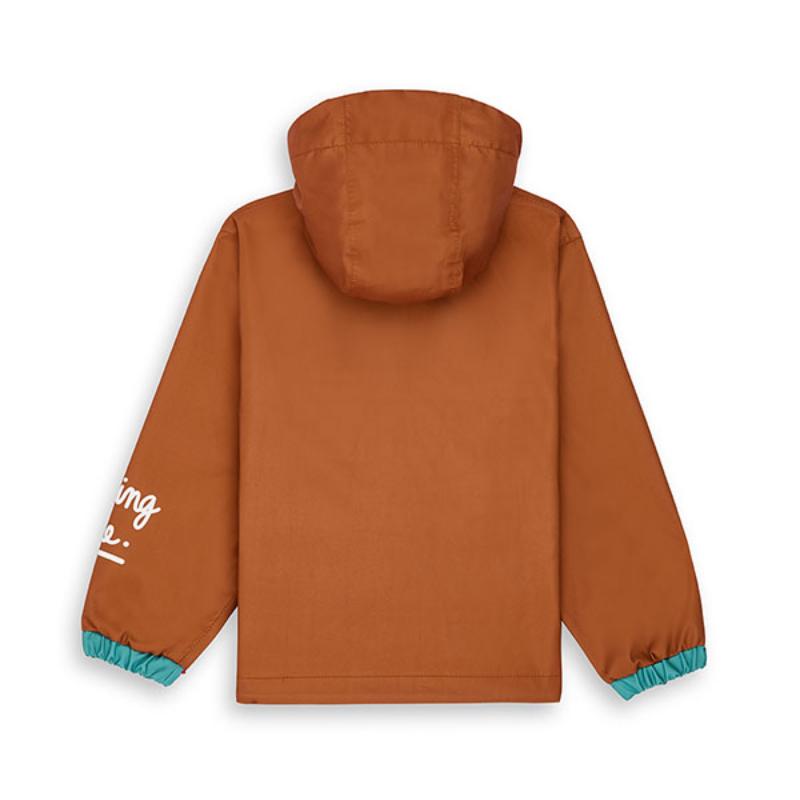 Бежево-коричневый оттенок арахиса — спокойный и универсальный. Водонепроницаемое покрытие надёжно защищает от осадков. Продуманный крой обеспечивает свободу движений. Манжеты на резинке не дают воде затекать внутрь рукавов. Капюшон регулируется по объёму. Куртка сочетается с любыми цветами одежды, подходит мальчикам и девочкам.