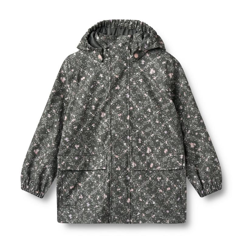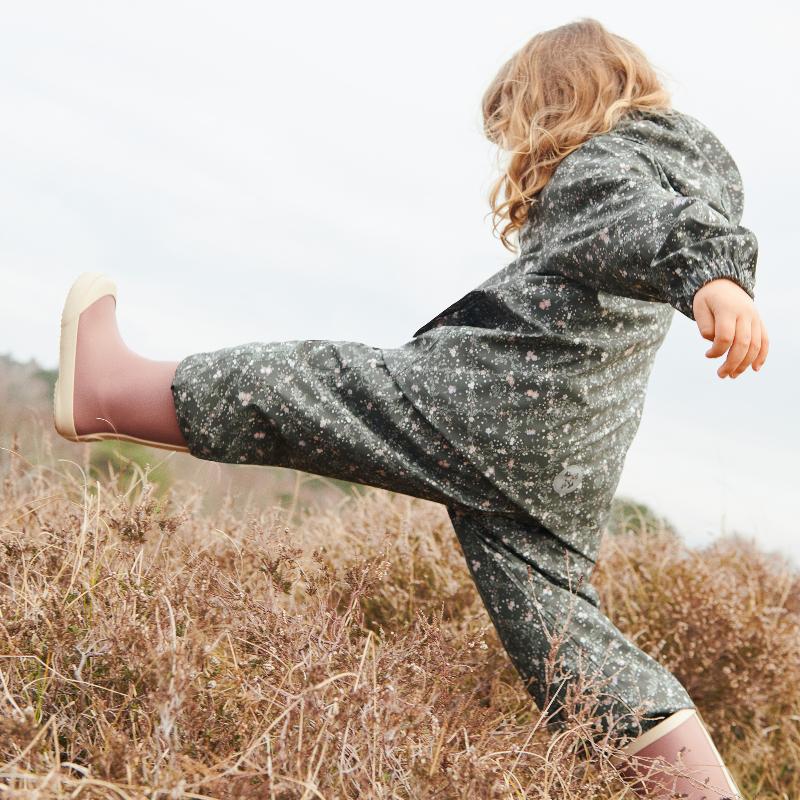 Дождевик с узором из мелких цветов в клетчатой композиции — зелёные, бежевые и голубые нотки создают ощущение лесного озера. Прозрачная ткань пропускает свет, но надёжно отводит влагу. Капюшон не спадает, рукава не задираются — продумано до мелочей для детской активности.