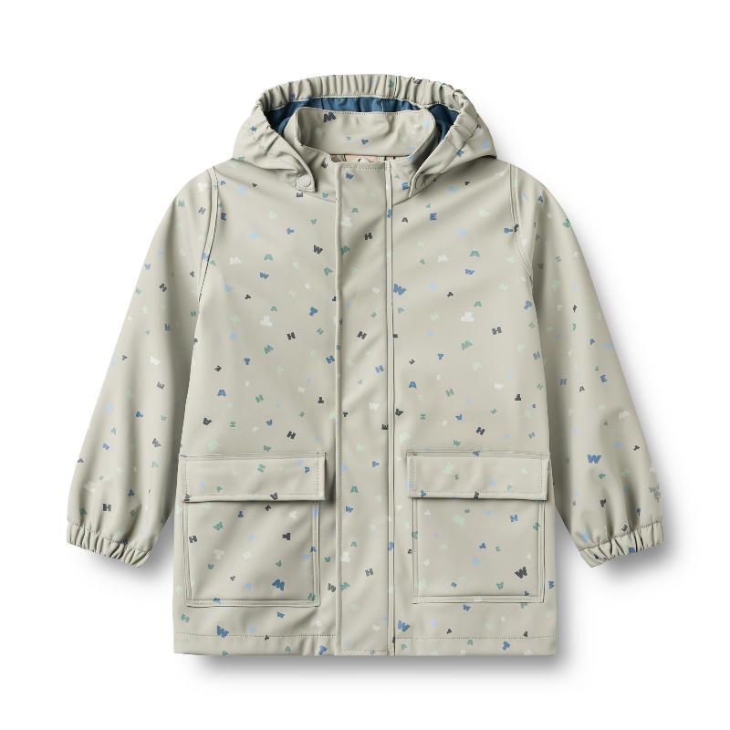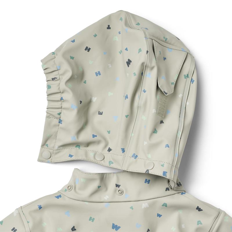 Водонепроницаемый дождевик с необычным принтом-буквами. Капюшон отстегивается, молния закрыта кнопками от дождя. Карманы с клапанами, светоотражатели для безопасности. Мягкая ткань, не сковывает движения. Грязь легко убирается влажной тряпкой после прогулки. Надевается поверх кофты или толстовки. К куртке есть штаны из той же коллекции. Ребенок справится с застежкой сам. Резинки на рукавах защищают от ветра и воды.