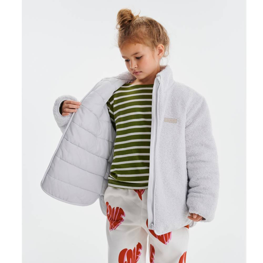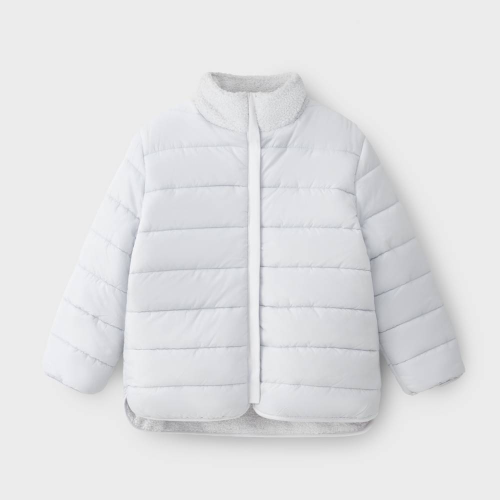 Мягкая фактура бербер-флиса снаружи и стеганая подкладка с наполнителем внутри — куртка греет от -5 до +10°С, не теряя легкости. Удлиненный крой сзади закрывает поясницу, воротник-стойка защищает шею, так что надевать шарф необязательно. Серый — один из тех цветов, которые не надоедают за сезон и подходят под любой образ, будь то яркий свитшот или спокойные тона.