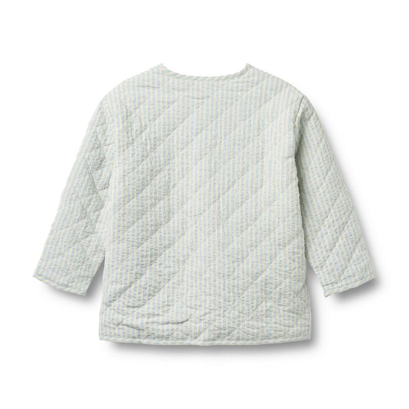 Стеганая куртка в полоску из органического хлопка с легким утеплителем. Застежка на пуговицы спереди, свободный крой, мягкая окантовка по вырезу и низу. Классический фасон дополняет любой образ. Носится отдельно как легкая куртка поверх футболки или как дополнительный слой под верхнюю одежду в холодную погоду. Подходит для весны, лета, ранней осени. Хорошо сочетается с шортами, брюками, юбками.