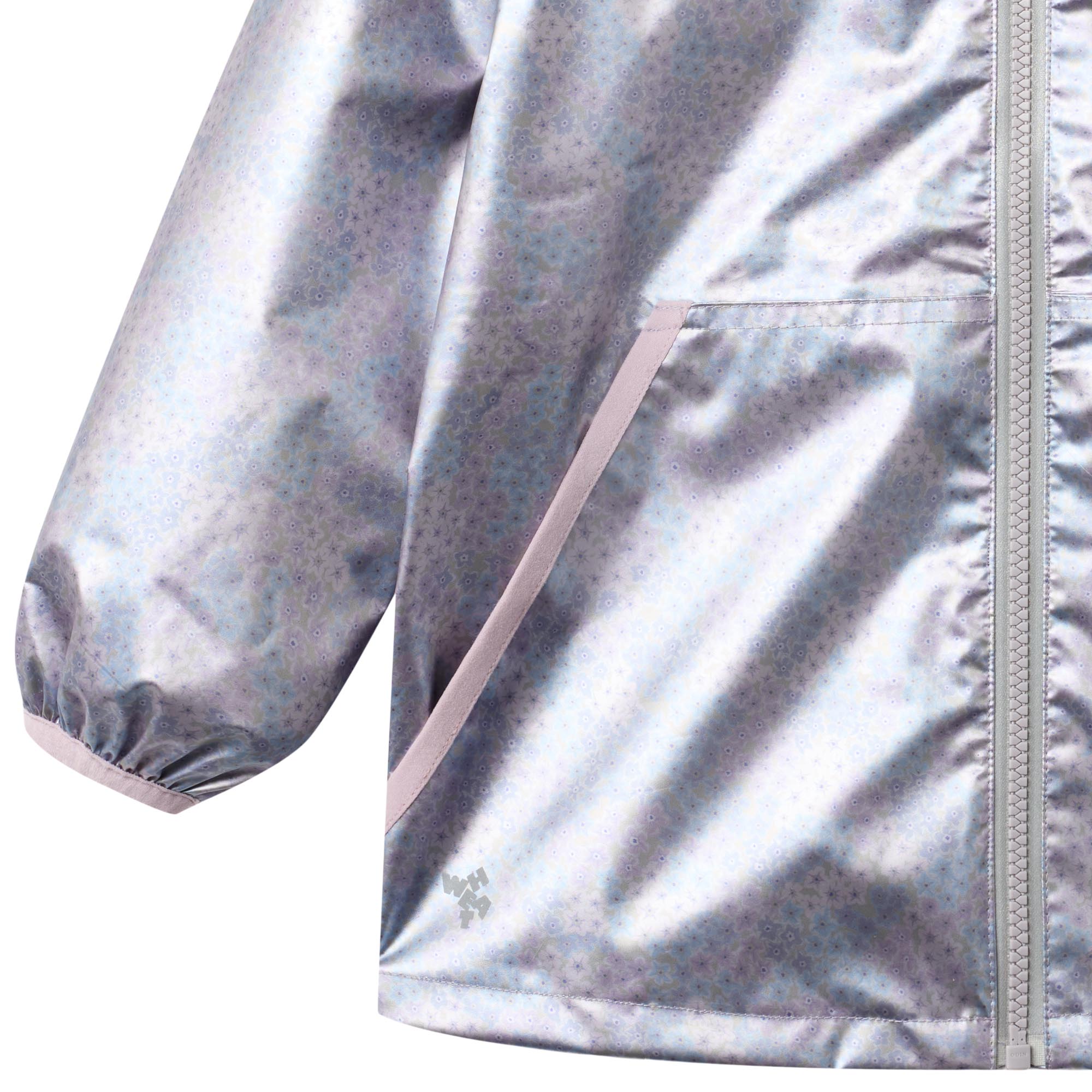 Универсальная куртка с нежным цветочным рисунком. Не промокает, хорошо дышит, внутри флис для тепла. Капюшон снимается на кнопках, есть светоотражатели. Легко протереть влажной тряпкой после прогулки. Карманы закрываются клапанами. Молния застегивается с двух сторон, удобно надевать. Манжеты на резинке не пропускают ветер. Ребенок может активно играть и бегать. Подходит для прохладной погоды весной, осенью и теплой зимы. Красивый авторский принт от датских дизайнеров.