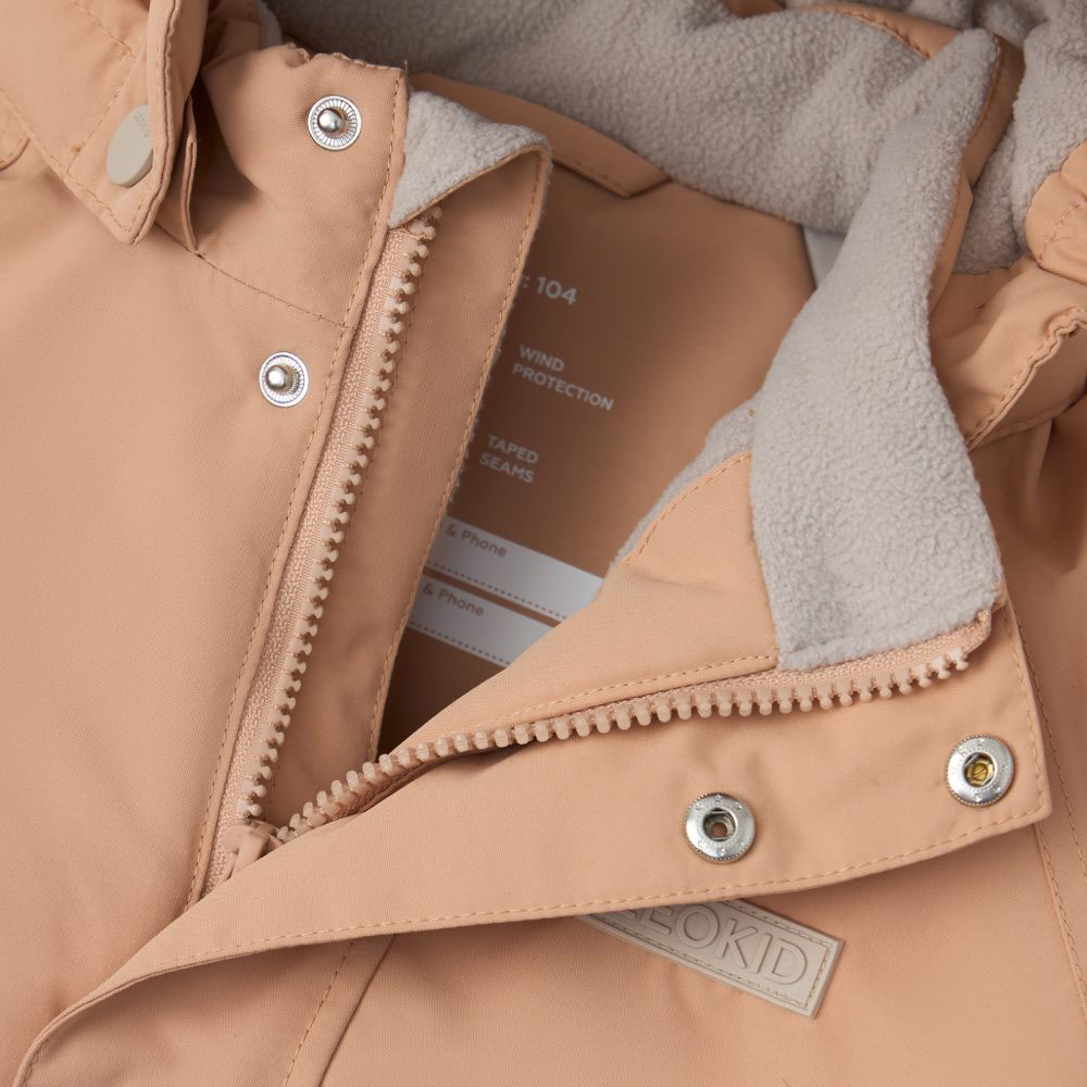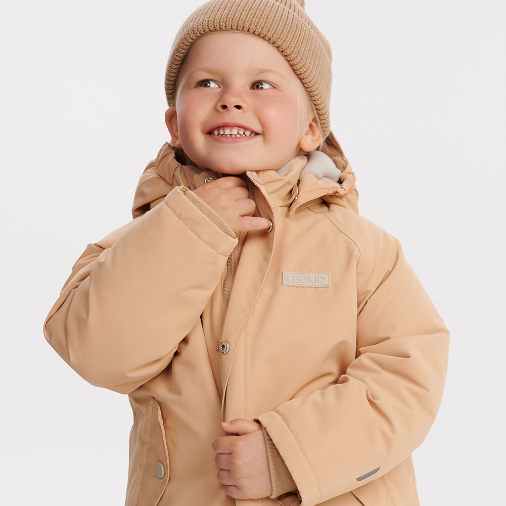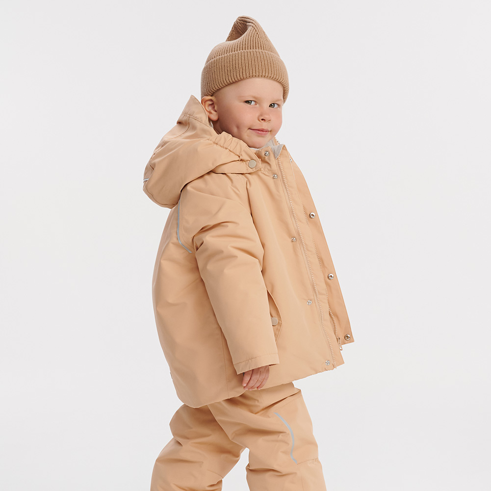 Нежный цвет словно напоминает о тёплых орехах и уютных осенних вечерах. Эта куртка создана для радости на свежем воздухе: бегать, кататься на качелях и ловить первые снежинки на ладошку в ней одинаково удобно. Тепло остаётся внутри, а лёгкая ткань защищает от холодного ветра. Она подружится с любыми аксессуарами и подарит маленькому исследователю комфорт на целый день.