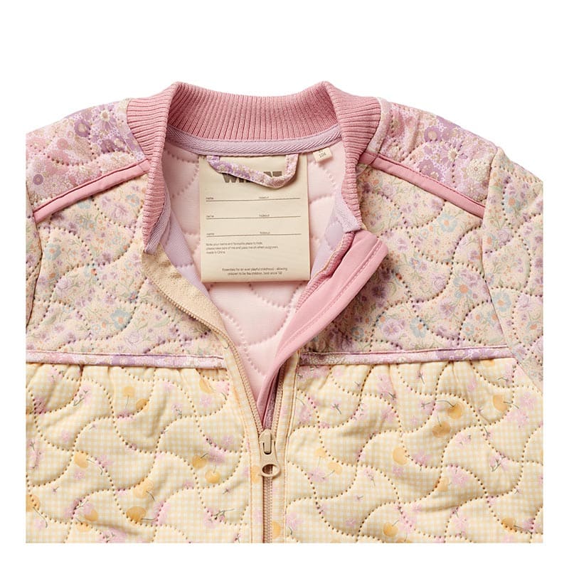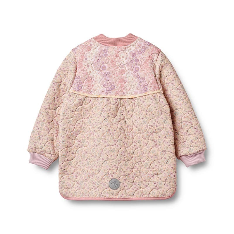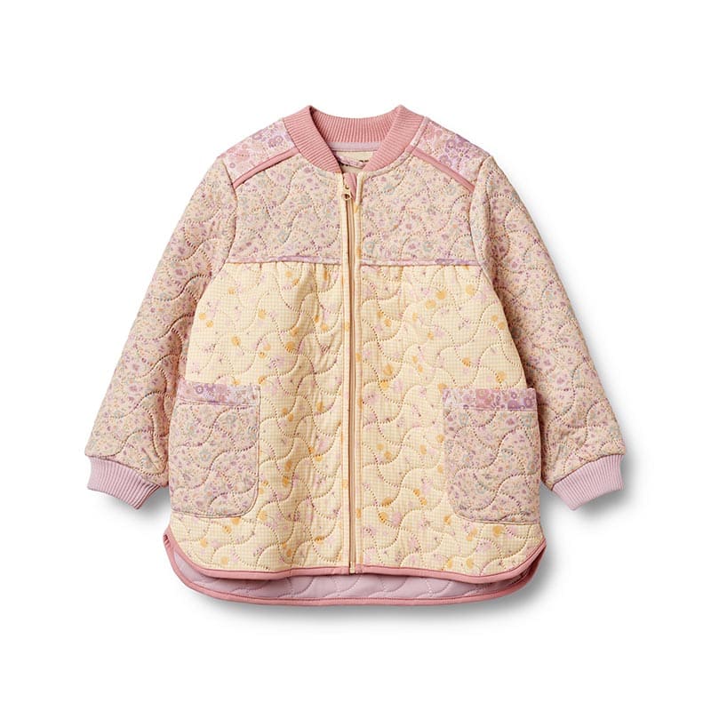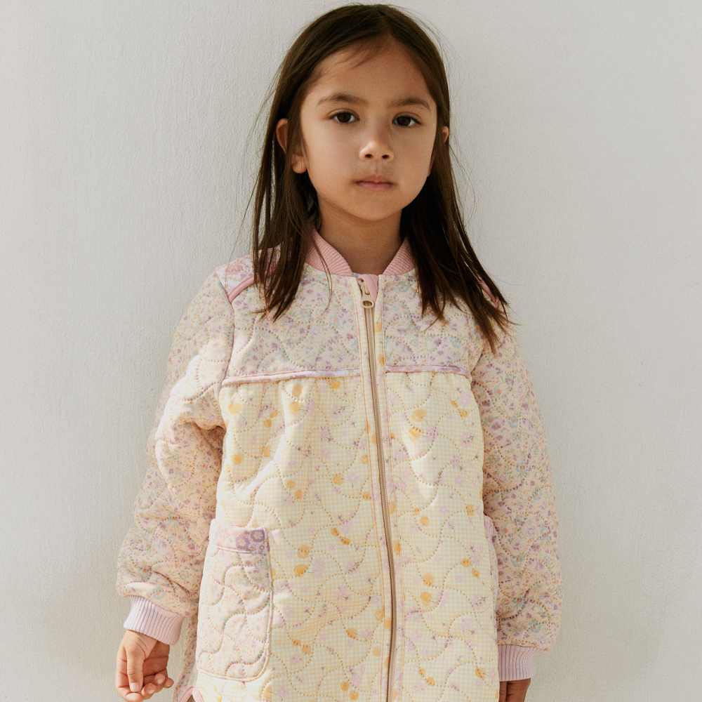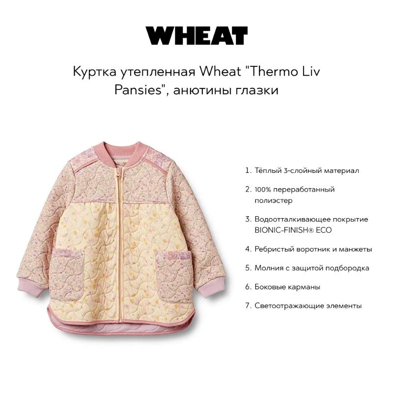 Эта утепленная куртка с красочным принтом анютиных глазок — идеальный выбор для прохладных дней. Мягкая и теплая ткань надежно защитит от холода, а стильный дизайн сделает вашего ребенка центром внимания. Внешний слой защищает от ветра и влаги, обеспечивая комфорт в любых погодных условиях. Куртка будет отлично смотреться с джинсами или штанами, создавая комфортный образ для прогулок и активных игр на свежем воздухе.