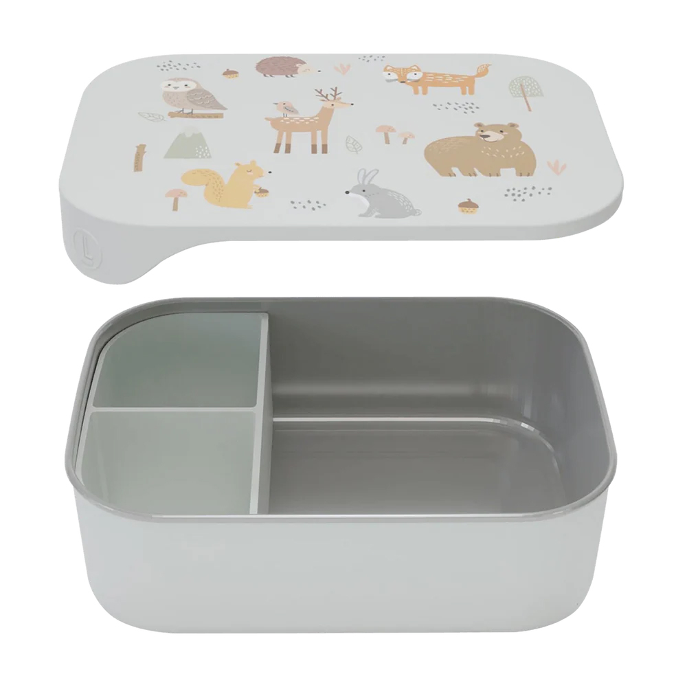 Ланч-бокс с лесными друзьями порадует любителей природы. Крышка мягкая, открывается без усилий, но держится крепко — можно смело бросать в портфель. Есть съемная перегородка для удобного разделения блюд на три части или использования всего пространства целиком. Легкая металлическая основа долго служит. Безопасно мыть в посудомойке, держать в холодильнике или морозилке. Все элементы легко разбираются. Удобный формат для детских обедов в садике или на прогулке.