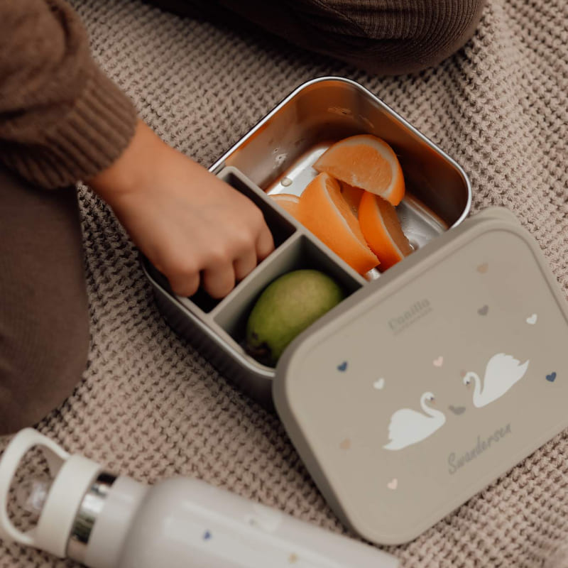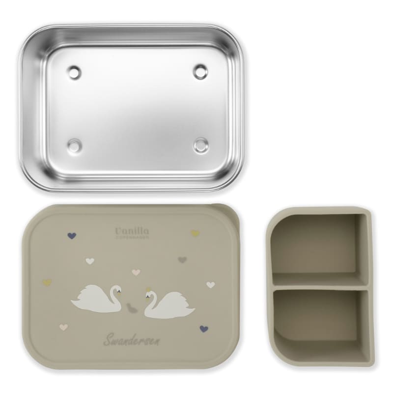 Ланч-бокс из коллекции Vanilla Copenhagen в теплом сером оттенке «Swandersen» станет отличным решением для хранения и транспортировки детского питания. Внутри предусмотрены удобные разделители, которые позволяют аккуратно разложить различные блюда, сохраняя их свежесть и вкусовые качества. Компактный и легкий, этот ланч-бокс удобно брать с собой на прогулки, в детский сад или поездки. Прочный и безопасный материал делает его практичным и долговечным аксессуаром.
