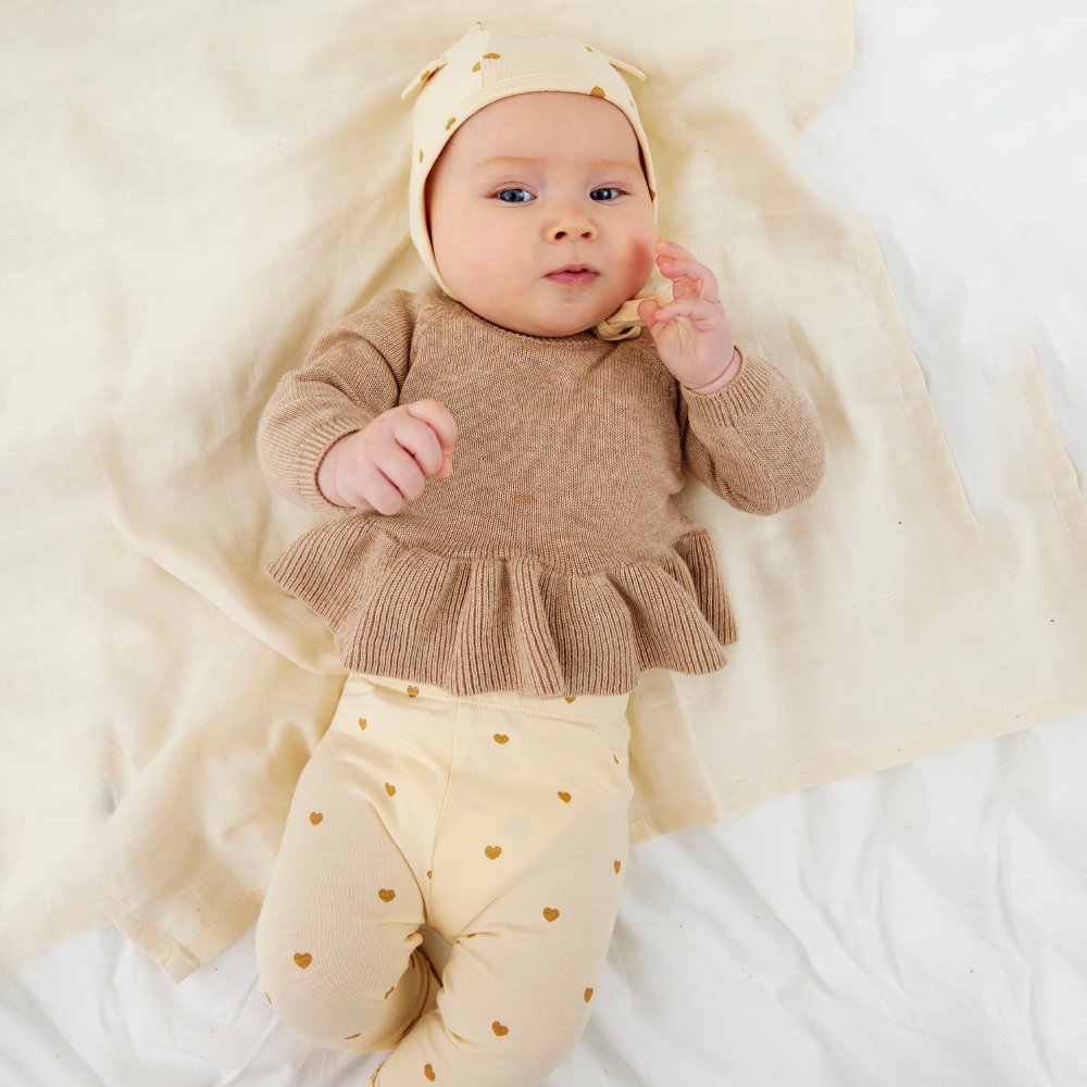 Эти леггинсы с принтом ванильных сердец идеально подойдут для малышей. Изготовленные из мягкого материала, они не стесняют движений и обеспечивают комфорт в повседневной жизни. Леггинсы легко комбинируются с различными топами или платьицами, создавая уютный и стильный образ для малыша. Идеальны для активных игр, прогулок и повседневных дел. Модный дизайн и удобство — это главное преимущество.