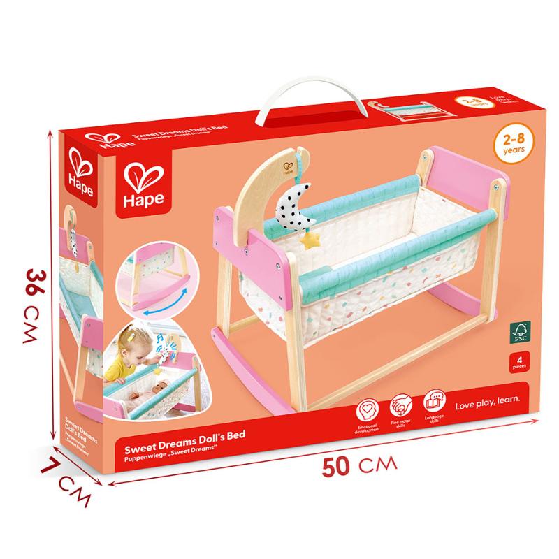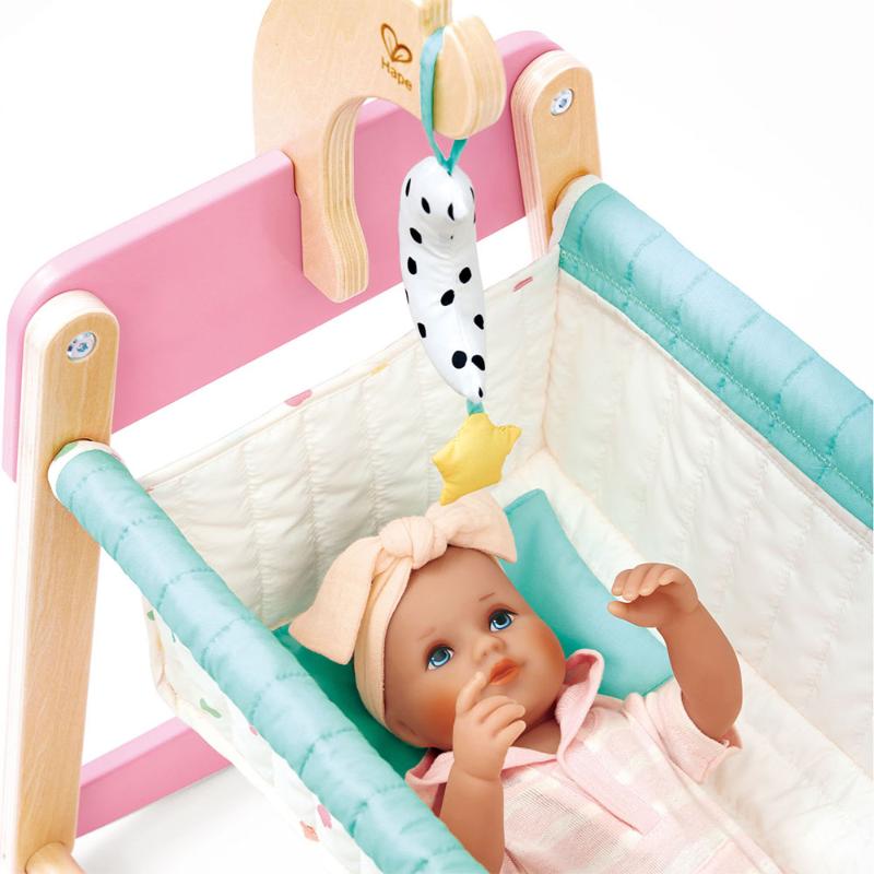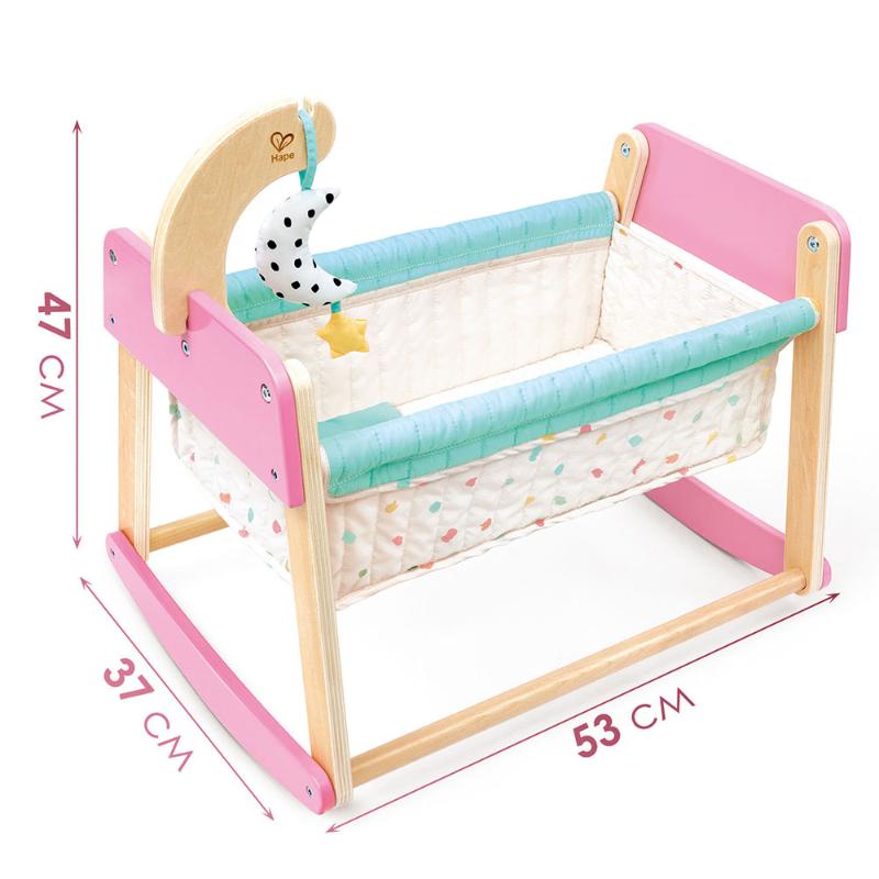 Уютная кроватка-качалка для любимой куклы. Покачивай свою малышку, укрывай мягким одеяльцем и пой колыбельные под нежные подвески. Деревянная люлька такая красивая и удобная — твоя кукла точно сладко заснёт. Играй в заботливую маму или папу, укладывай игрушечных друзей спать и создавай уютную атмосферу. Самая нежная игра для маленьких родителей и их кукол.