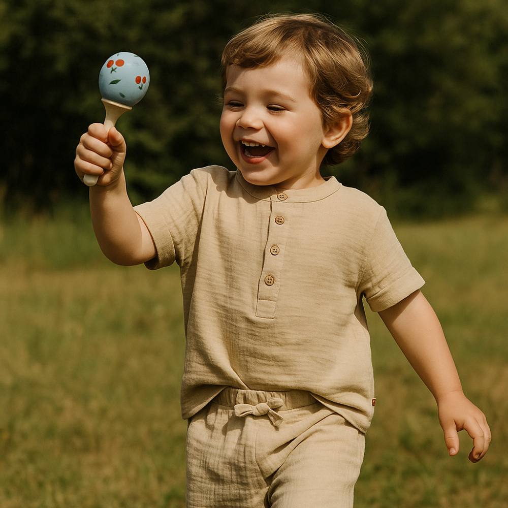 Как настоящая вишня — звонкая, округлая и манящая. Эта деревянная погремушка-маракас помогает малышу исследовать мир звуков, ощущений и движений. Она издаёт лёгкий звук, который не раздражает, а заинтересовывает и успокаивает. Эргономичная форма создана специально для детских ладошек, а гладкая поверхность дарит приятные тактильные ощущения. Погремушка станет стильным и полезным спутником в первые месяцы жизни.