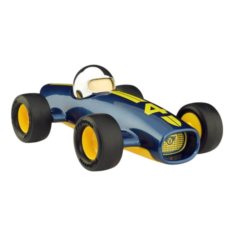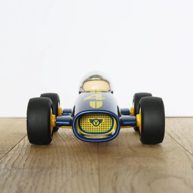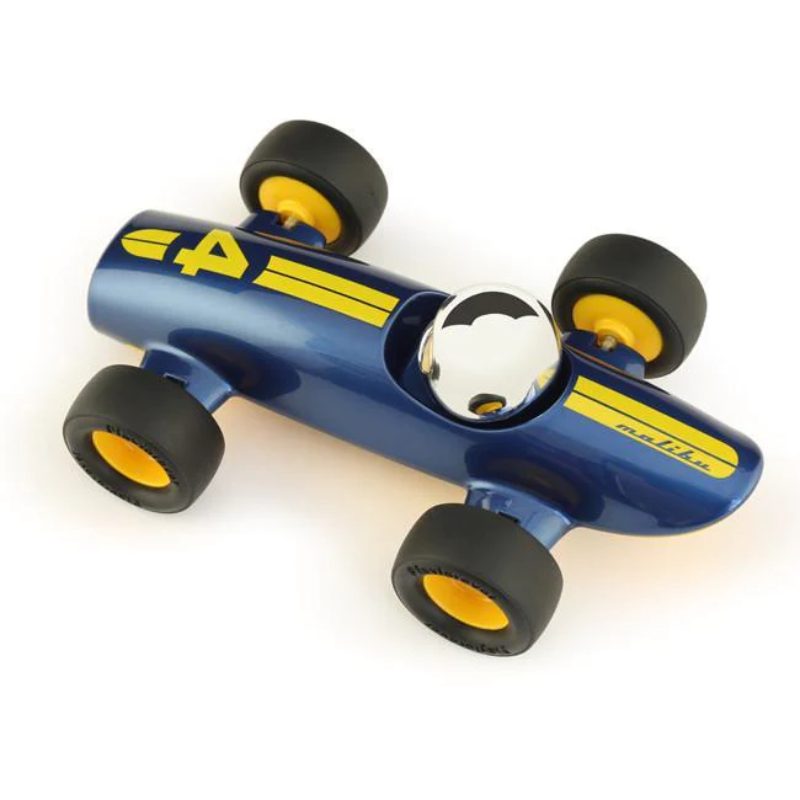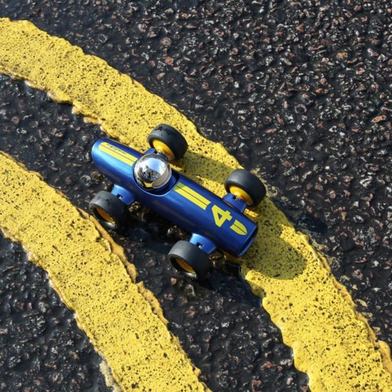 На старт, внимание, марш! Слышите рёв двигателя? Это Малибу Лукас рвётся в бой! Вдохновлённый гоночными Maserati Formula 1 20-30-х годов, этот сине-жёлтый болид создан для скорости. Обтекаемая форма сигарообразного шасси, длинный нос и широкий «рот» делают его настоящим хищником трассы. Низкая посадка и цепкие резиновые шины дают уверенность на виражах. Компактный размер доказывает: для победы не нужна огромная машина, главное – стремительность! Этот гонщик точно не останется на стартовой решётке.