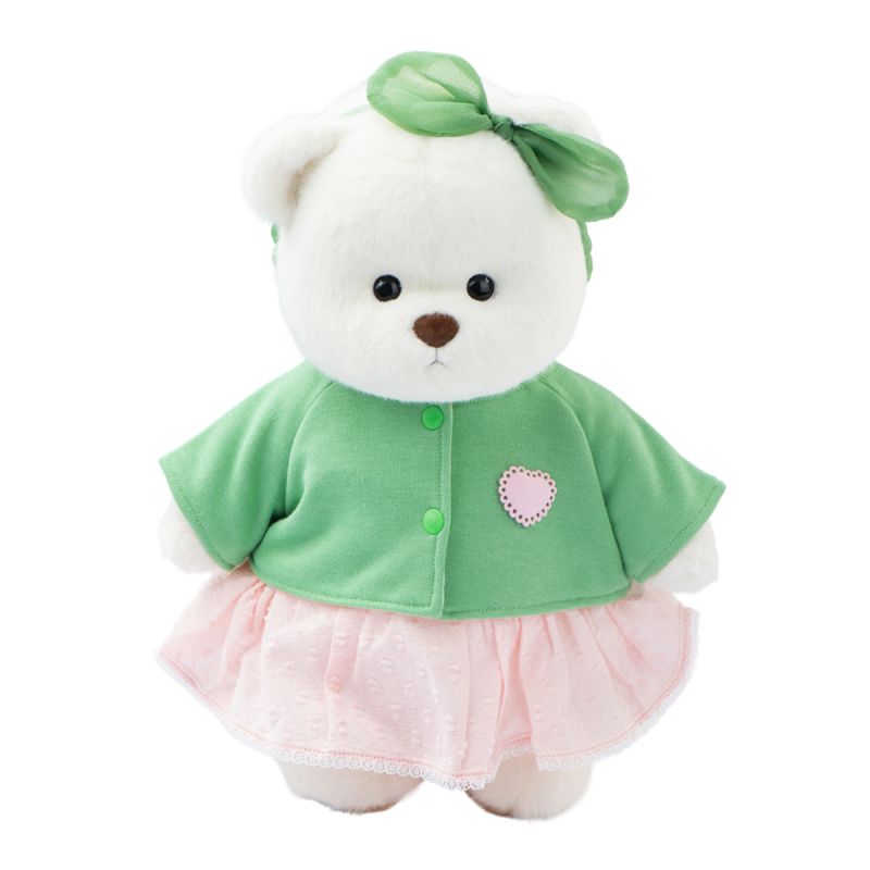 Очаровательная медведица в ярком наряде излучает радость и женственность! Белоснежная шерсть прекрасно контрастирует с зелёным топиком и нежной розовой юбочкой. Высота 30 см делает её идеальной для игр и украшения интерьера. Каждая деталь одежды тщательно проработана и надёжно закреплена. Ручная работа гарантирует уникальность каждой медведицы. Этот стильный персонаж станет любимицей маленьких модниц и напомнит, что счастье — в ярких красках и искренних улыбках.
