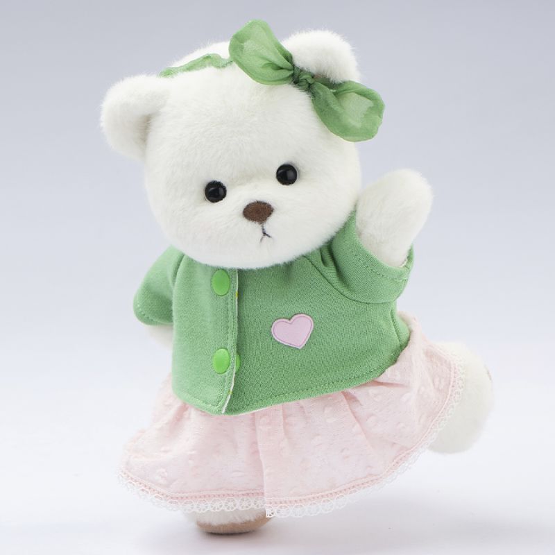Миниатюрная медведица в модном наряде — воплощение стиля и нежности! Белая пушистая шерсть, зелёный топик и воздушная розовая юбочка создают гармоничное сочетание. Размер 20 см идеален для маленьких ручек и удобен для путешествий. Каждый элемент костюма выполнен с вниманием к деталям. Ручное изготовление делает каждую медведицу особенной. Этот яркий персонаж научит ценить красоту в мелочах и станет верным другом для маленьких мечтателей.