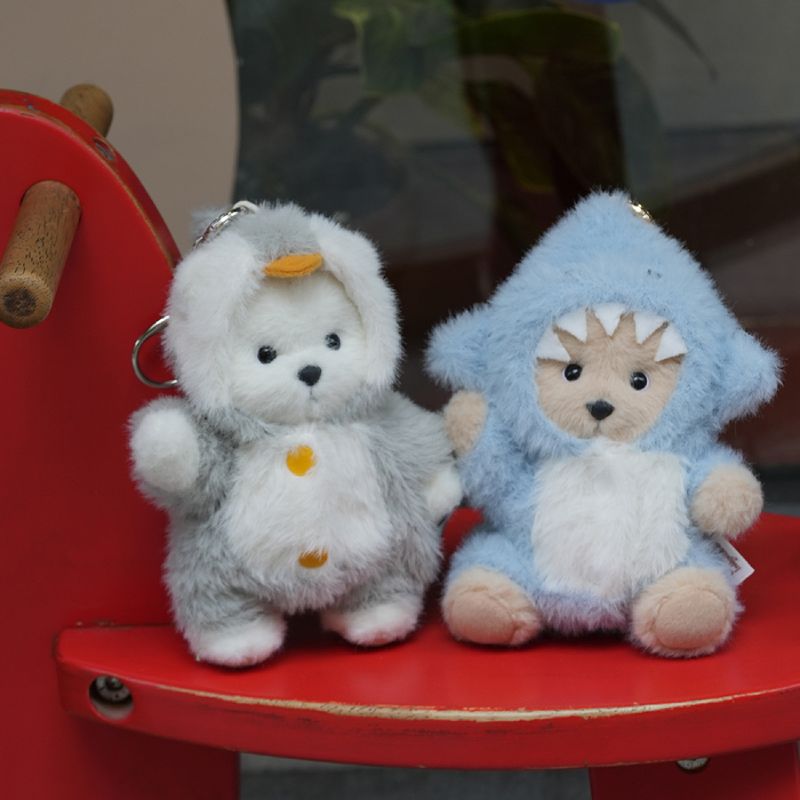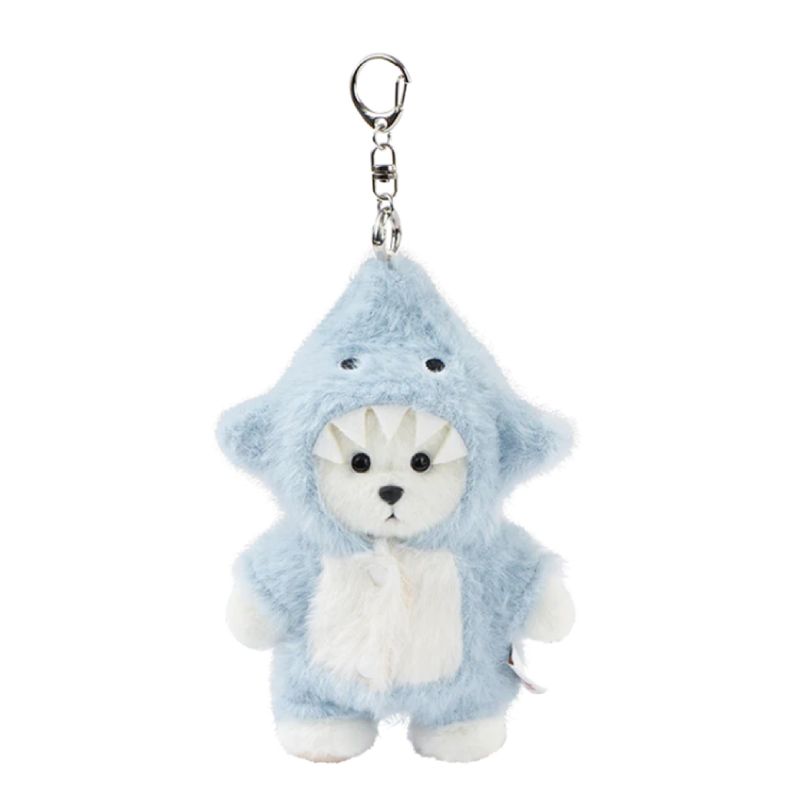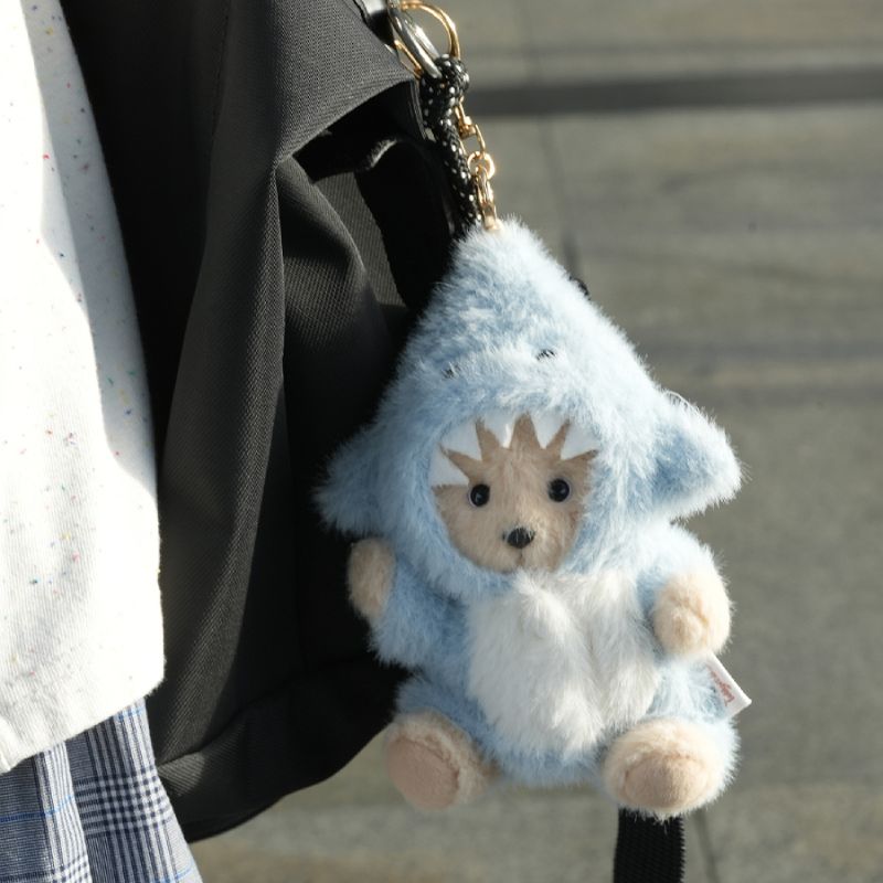 Медвежонок нежного молочного оттенка решил стать грозной акулой! Контраст между мягкой внешностью мишки и забавным костюмом морского хищника создаёт неотразимое сочетание. Плавники и характерная форма костюма делают этот брелок по-настоящему оригинальным. Компактный размер удобен для ношения на сумке, рюкзаке или ключах. Каждый медвежонок уникален благодаря ручной работе. Идеальный подарок для тех, кто любит юмор и не боится выделяться из толпы.