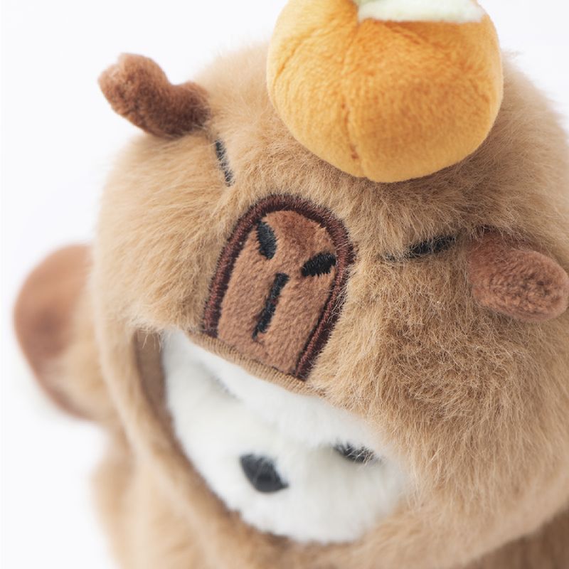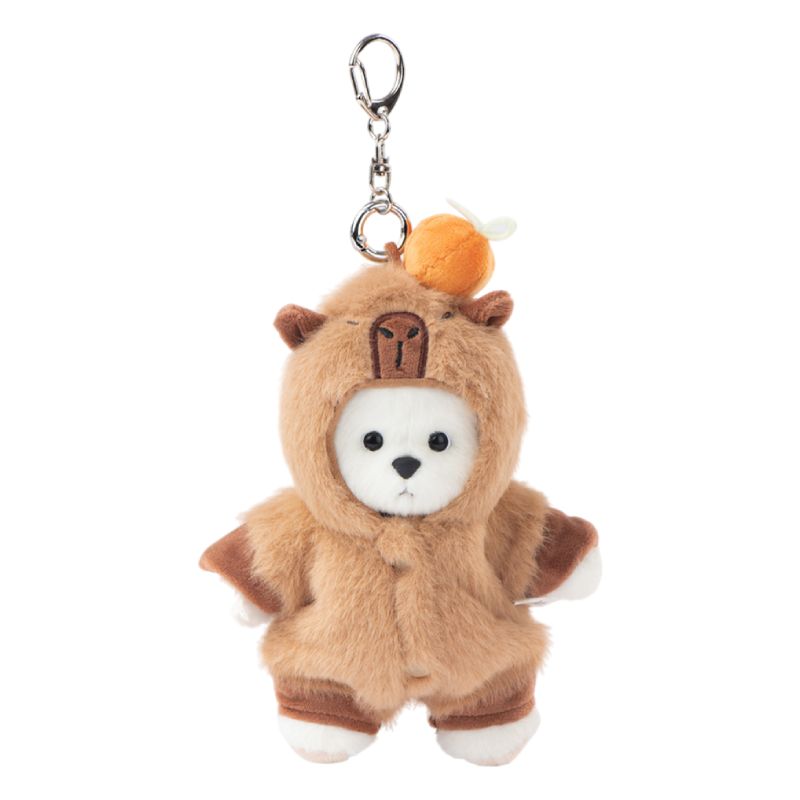 Белоснежный медвежонок, переодетый в капибару, — самое умиротворяющее сочетание на свете! Этот миниатюрный брелок объединяет два символа спокойствия и дружелюбия. Мягкая шерстка и очаровательный костюм делают его невероятно притягательным. Размер позволяет всегда держать пушистого друга рядом — на сумке, рюкзаке или связке ключей. Ручная работа гарантирует уникальность каждого медвежонка. Идеальный подарок для тех, кто ценит нестандартную милоту и позитивную энергию!