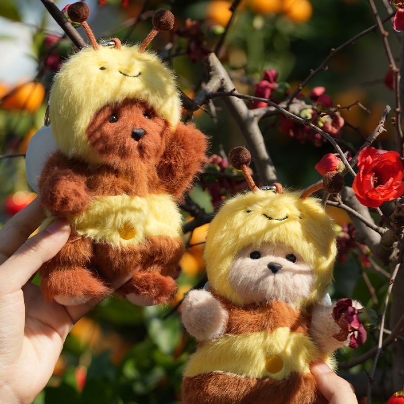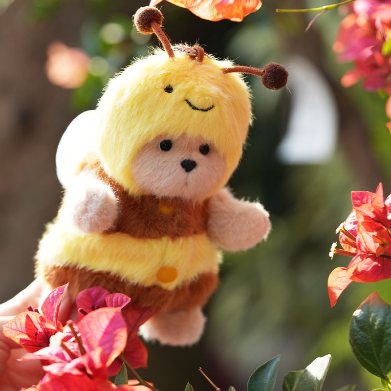 Трудолюбивый медвежонок молочного цвета в костюме пчёлки готов собирать мёд! Полосатый наряд и крошечные крылышки превращают мягкого мишку в милого насекомого. Нежный оттенок шерсти прекрасно сочетается с ярким костюмом. Миниатюрный размер делает его удобным брелоком для повседневного ношения. Каждая деталь выполнена вручную с заботой и вниманием. Этот маленький труженик напомнит о важности целеустремлённости и станет символом продуктивности и позитива.
