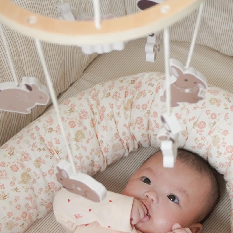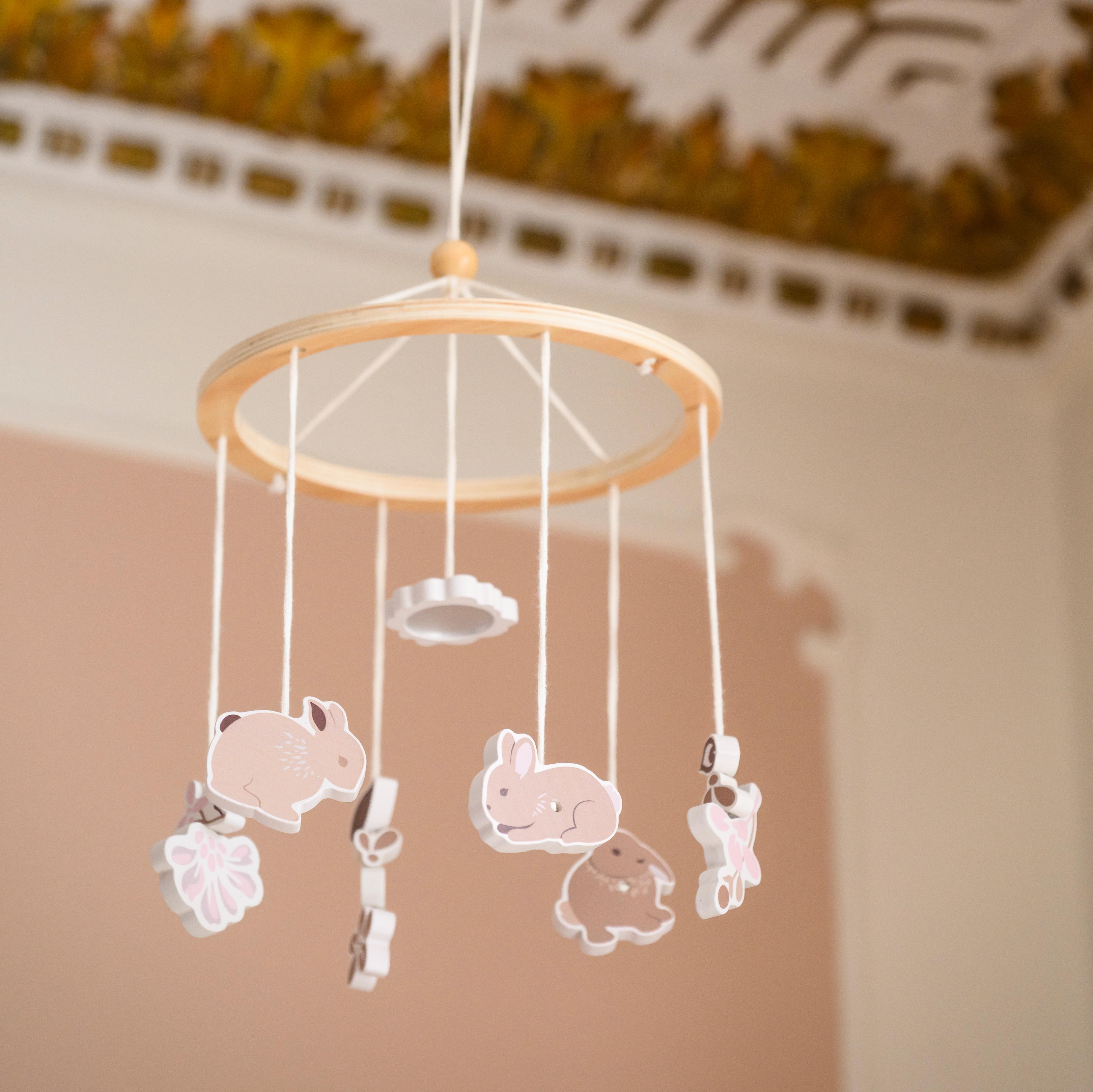 Растительный принт Augusta переносится на подвесные элементы мобиля, создавая ощущение природной гармонии. Бежевые и кремовые тона успокаивают, а не перевозбуждают нервную систему малыша. Текстильные детали мягкие и безопасные, механизм крепления надёжный. Мобиль становится частью продуманного интерьера, где каждая деталь работает на создание атмосферы тишины и защищённости. Скандинавский подход к оформлению детского пространства.