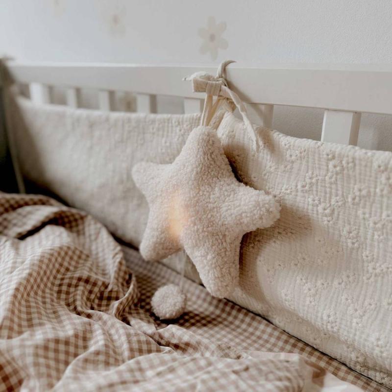 Ночник-мобиль в форме звезды превращает отход ко сну в приятный ритуал. Аккумуляторное питание с зарядкой через USB обеспечивает автономность, а три оттенка света от холодного до тёплого с регулировкой яркости позволяют подобрать идеальное освещение. Уникальная успокаивающая мелодия помогает расслабиться. Ванильный цвет добавляет уюта детской. Экологичные материалы и долгий срок службы подчёркивают заботу бренда об устойчивом развитии и комфорте.