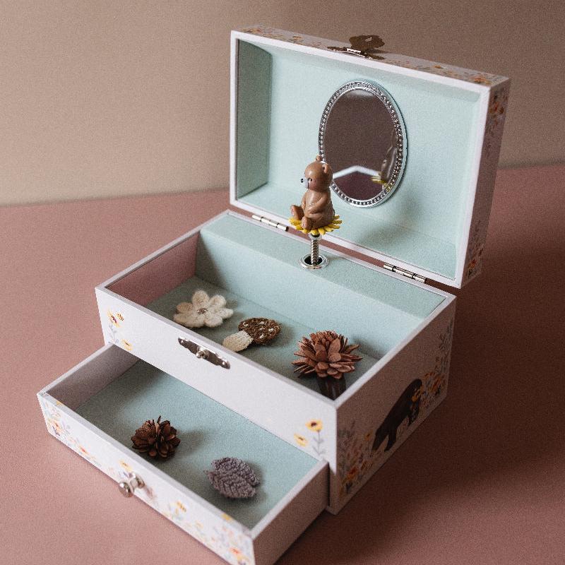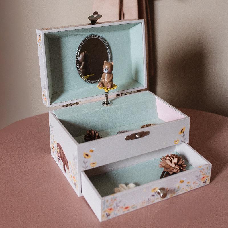 Дополнительная информация: мишка вращается под отрывок мелодии из "Лебединого Озера". В шкатулке есть отделение для хранения украшений. Рисунок нанесен нетоксичной краской, на соевой основе.