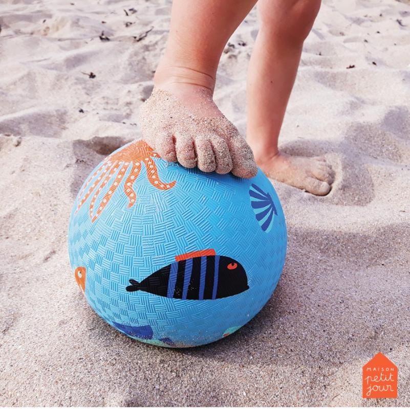 Прочный мяч голубого цвета с морскими рисунками для игр на улице. Размер большой — удобно ловить и бросать друг другу. На мяче изображены обитатели моря. Материал крепкий, выдерживает удары об асфальт и траву. Голубой цвет не маркий, на нем не так видны потертости. Мяч хорошо отскакивает от земли. После прогулки его легко протереть влажной тряпкой. Держит форму даже после активного использования. Подходит для игр во дворе, в парке или на пляже. Прослужит не один сезон.