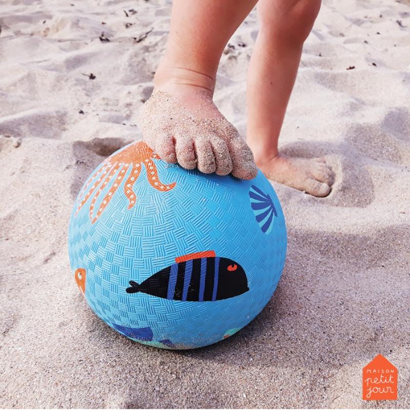 Компактный мяч с морскими рисунками как раз для детских рук. Малышу удобно его держать, ловить и кидать. Подходит для игр дома, когда на улицу не выйти. На прогулке тоже пригодится — поместится в обычный рюкзак. Материал прочный, легко моется от грязи. Голубой цвет спокойный, с рисунками обитателей моря. Хороший вариант для обучения ловле и броскам мяча. Легкий по весу, безопасный для малышей. Мяч не тяжелый, рука не устает во время игры. Держит форму долго.
