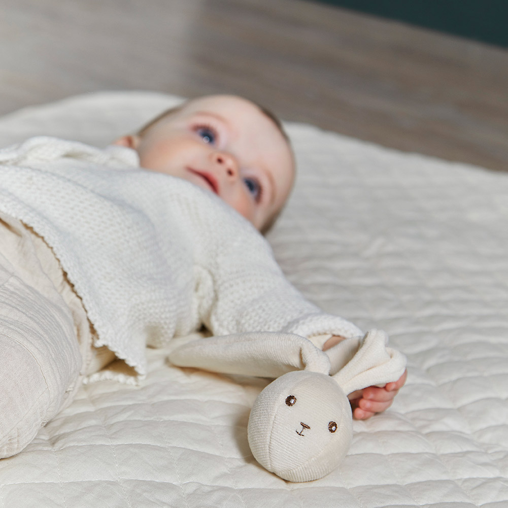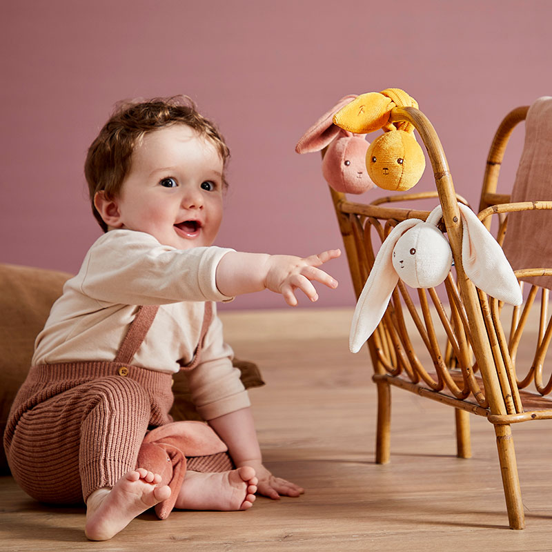 Дополнительная информация: большие ушки кролика также позволяют легко прикрепить его к коляске, чехлу, колыбели или сумке для пеленания. Внутри находится колокольчик.