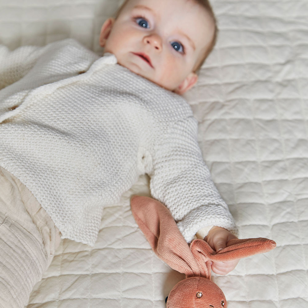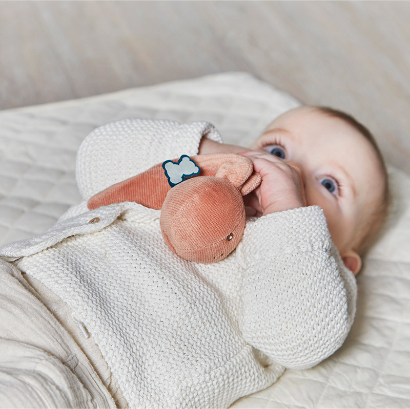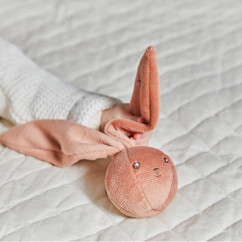 Дополнительная информация: большие ушки кролика также позволяют легко прикрепить его к коляске, чехлу, колыбели или сумке для пеленания. Внутри находится колокольчик.