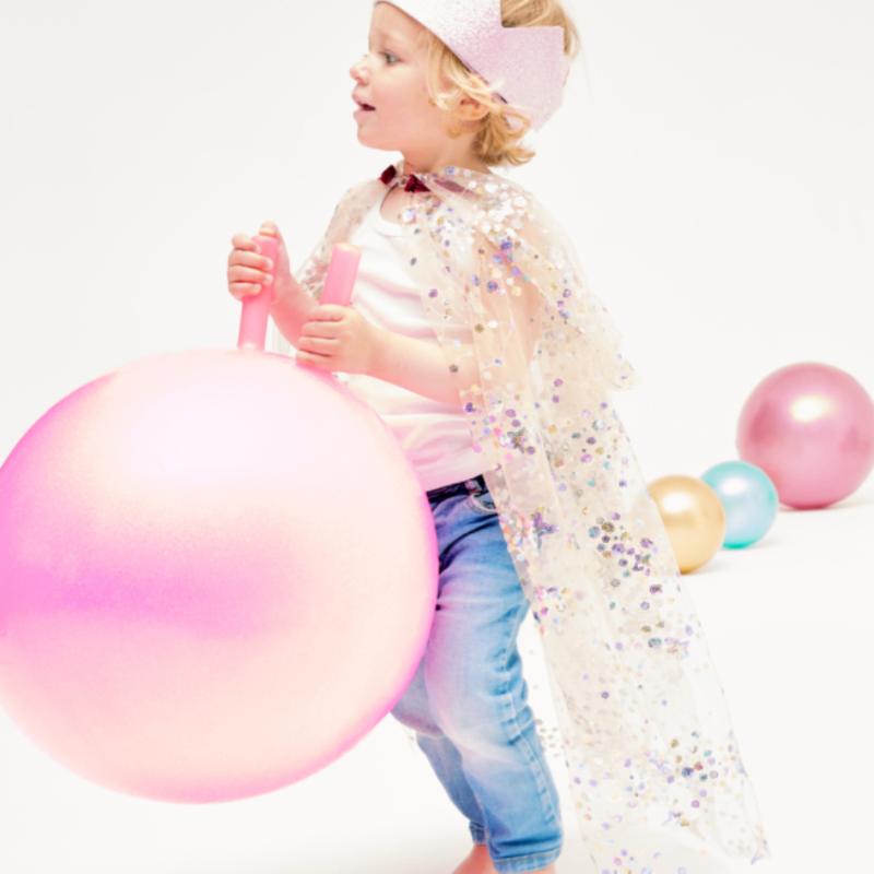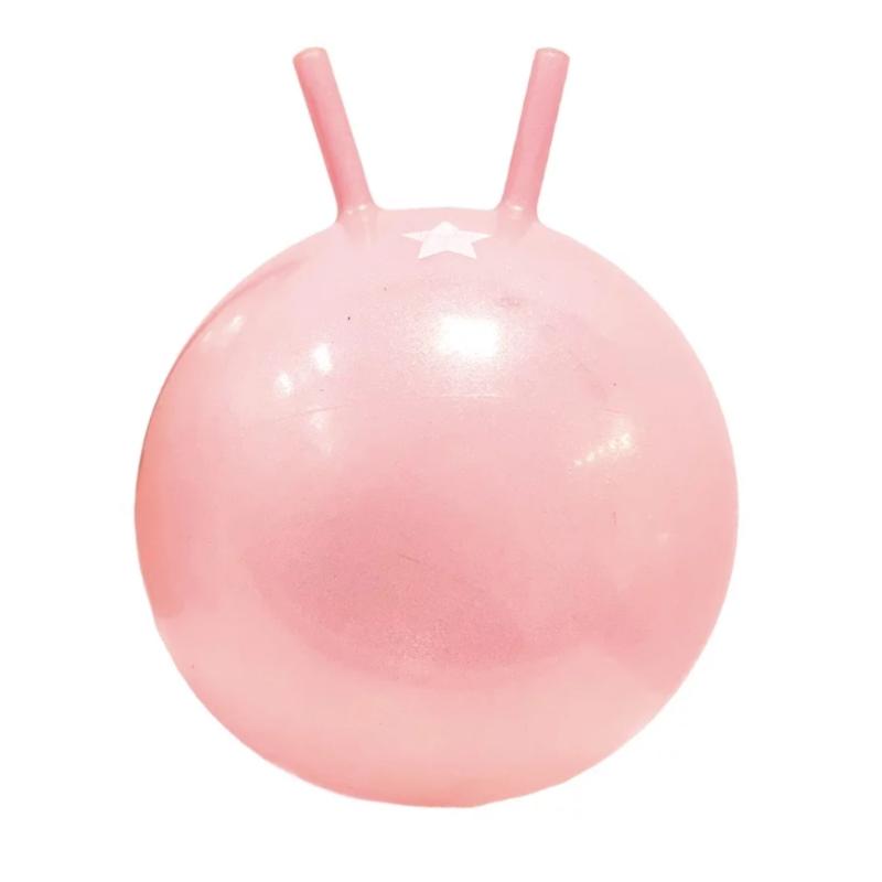 Мяч для прыжков нежно-розового цвета с блестками и удобными рожками. Развивает координацию, равновесие и тренирует мышцы ног у ребенка. Рожки-ручки помогают сохранять устойчивость во время прыжков. Подходит для игр в комнате и на улице. Прочный, рассчитан на активное использование. Блестящая поверхность делает игру интереснее. Можно прыгать одному или соревноваться с друзьями. Помогает направить детскую энергию в физическую активность.
