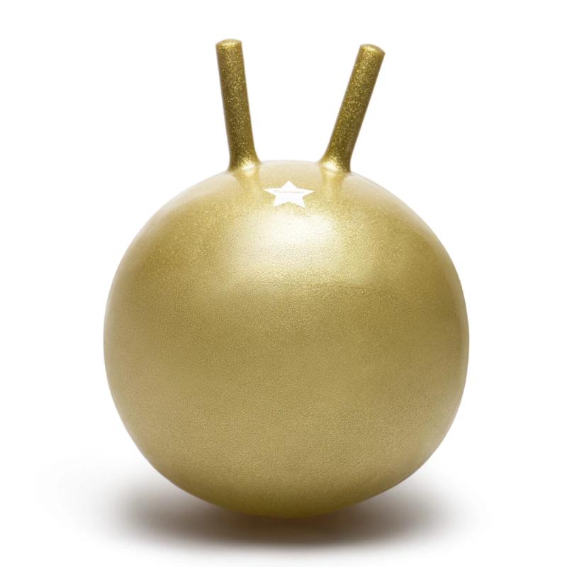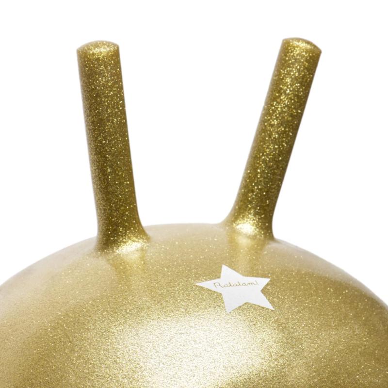 Прыгун золотого цвета с блестящим покрытием и рожками-ручками. Помогает ребенку развивать чувство баланса и укреплять ноги. Рожки удобно держать во время прыжков. Подходит для активных игр дома, во дворе или на даче. Прочный, выдерживает регулярное использование. Яркий золотой цвет с блестками добавляет веселья. Можно прыгать самостоятельно или устраивать соревнования с друзьями. Отличный способ потратить энергию с пользой.