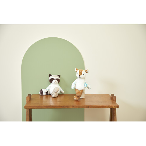 Этого симпатичного енота зовут Гастон, и он станет верным другом вашего малыша с самого его рождения. Он такой большой и мягкий, что малыш просто не захочет выпускать его из рук. Изготовленный из бархатистого микровелюра, енот подарит всю свою нежность и приятные ощущения при прикосновении к детской коже. Игрушка выполнена в небольшом размере, а значит, ее можно брать с собой на прогулки или в кроватку. Енот имеет характерную раскраску на хвосте и мордочке, а его передние лапки декорированы растительными узорами.