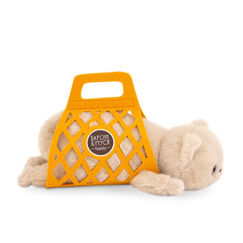 Кот Барсик в бежевом цвете — это воплощение тепла и уюта. Он лежит в стильной сумке, которая не только делает его мобильным, но и придает ему особую привлекательность. Барсик с мягкой шерсткой и добрыми глазами готов стать лучшим другом для вашего малыша, сопровождать его в играх и путешествиях. Размер идеально подходит для того, чтобы играть и обнимать его, а сумка станет удобным хранилищем для Барсика и его аксессуаров.