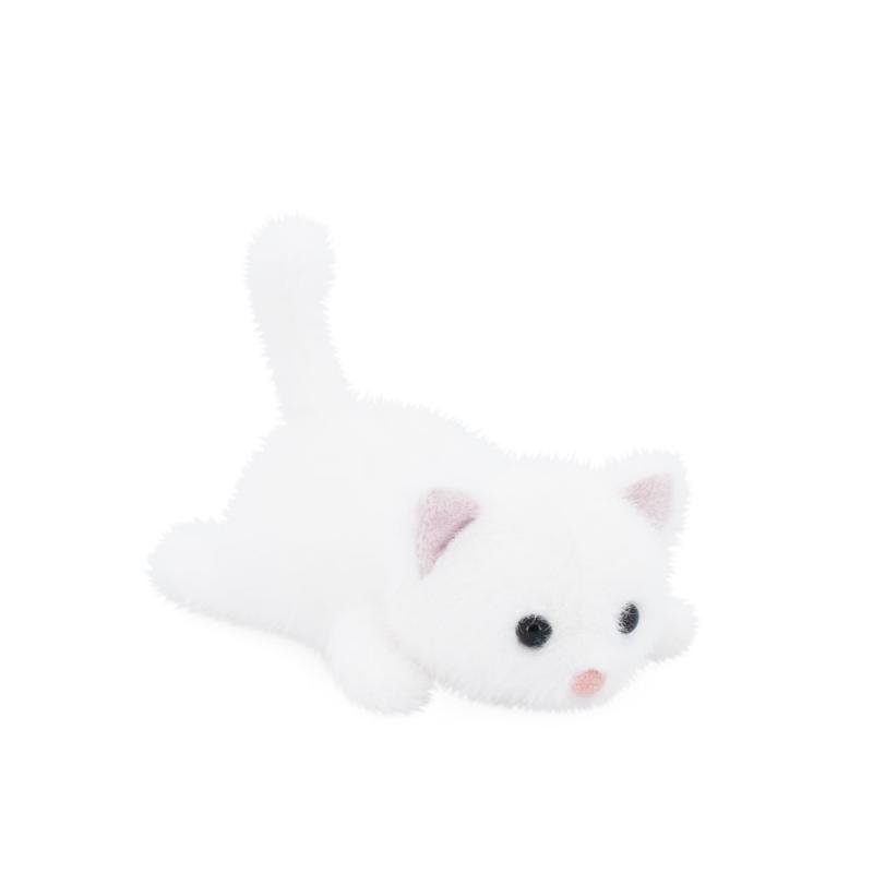 Белоснежный котенок в желтой фетровой сумке — контраст, который сразу притягивает взгляд. Пушистая шерстка, аккуратная мордочка, ручка, за которую удобно держаться — все продумано для настоящей детской игры в «своего питомца». Можно носить, укладывать, придумывать истории. Белый цвет делает игрушку универсальной — подойдет и девочке, и мальчику.