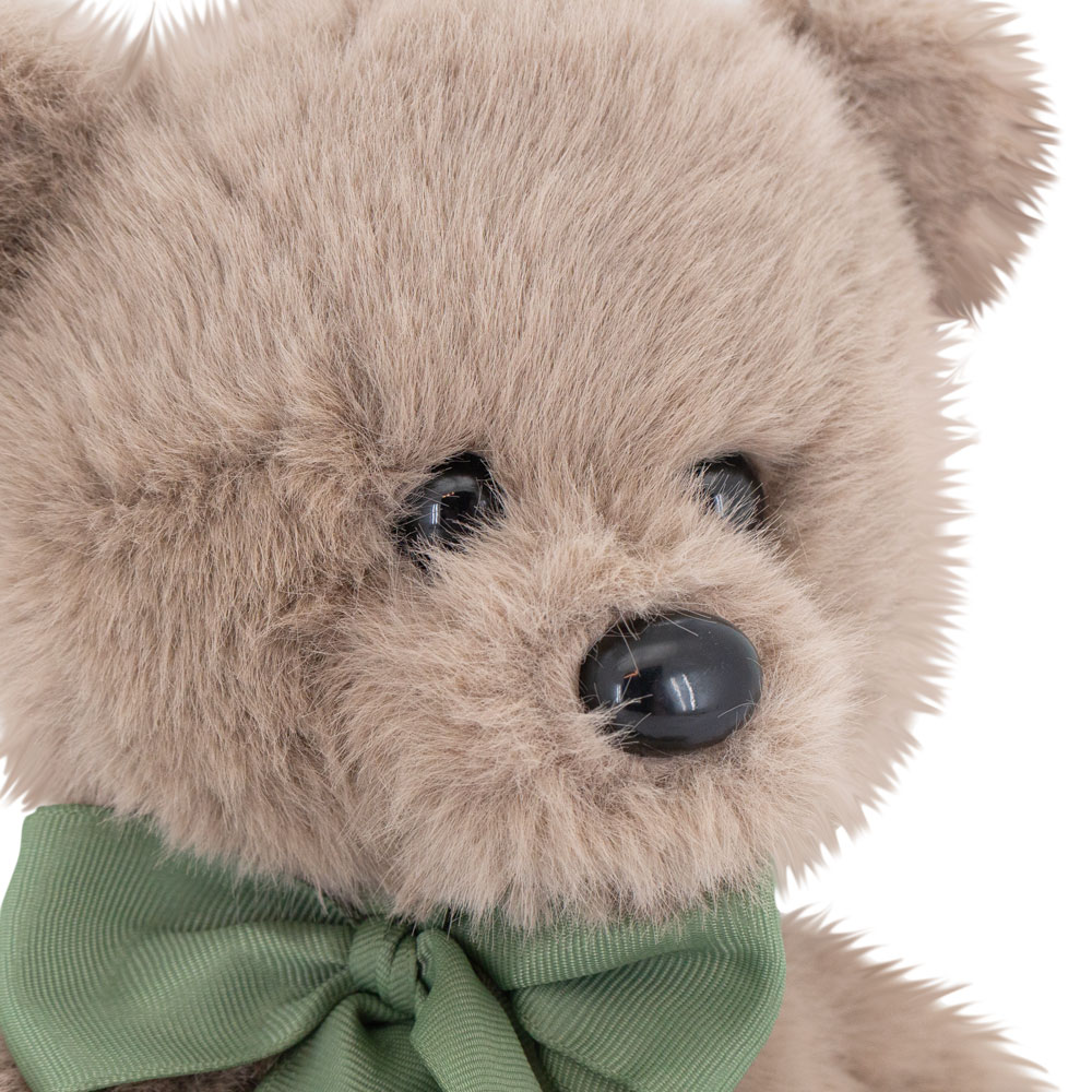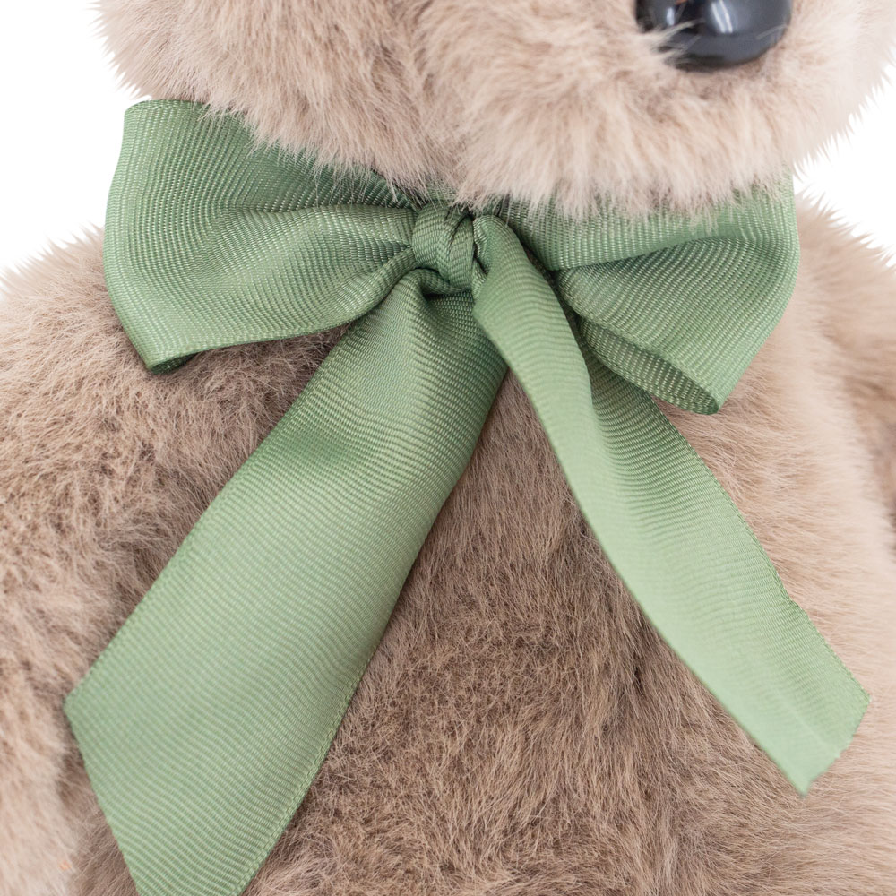 Плюшевый медвежонок цвета мокко с пышным зеленым бантом на шее. Мягкий пушистый мех так и хочется погладить. Компактный размер позволяет брать мишку с собой повсюду - на прогулку, в гости или в поездку. Медвежонок станет верным другом вашего ребенка, с которым можно обниматься перед сном. Безопасные материалы подходят даже для самых маленьких. Этот очаровательный мишка точно принесет много радости и улыбок в ваш дом.