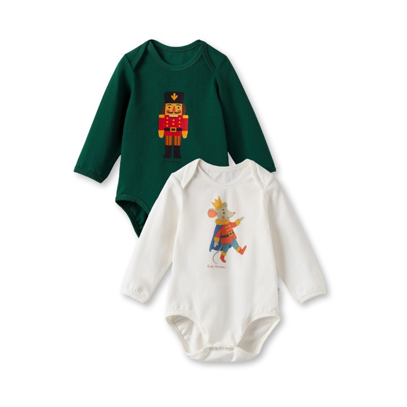 Два боди в одном наборе — решение для тех, кто не любит тратить время на выбор. Зелёный оттенок освежает, белый  —  актуален для праздника, а новогодние детали в дизайне делают базовую вещь интереснее. Качественный хлопок не линяет после стирок, форма сохраняется. Кнопки на плечах и в области подгузника упрощают переодевание. Это те вещи, которые надеваешь чаще всего, потому что они просто работают — без капризов и сюрпризов.