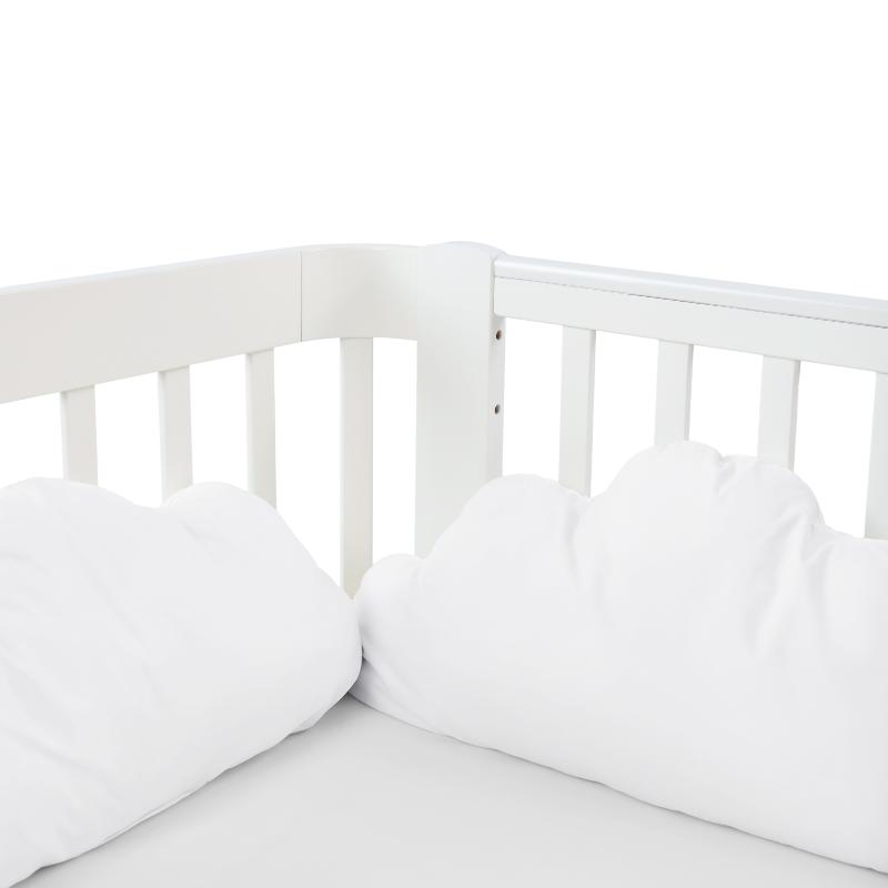 Три пушистых облачка для безопасности малыша! Мягкие бортики крепятся по периметру кроватки, создавая уютное пространство без острых углов и сквозняков. Натуральный хлопок приятен на ощупь, а плотный наполнитель из холлофайбера и поролона надёжно защищает от ушибов. Ручки и ножки не застрянут между рейками – только спокойный сон и безопасные игры!