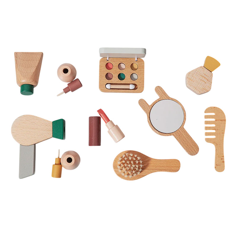 Деревянная косметичка с зеркальцем, помадой, тенями, кисточками — всё понарошку, но как настоящее. Цвета нежные, детали аккуратно обработаны. Игра развивает воображение, мелкую моторику, интерес к уходу за собой. Не содержит мелких съёмных частей, безопасна. Отличный подарок для тех, кто любит подражать маме.