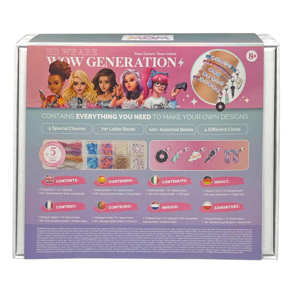 Дополнительная информация: в состав набора входят 70 бусин с буквами, 100 разноцветных бусин, 5 шармов, нить-основа четырёх цветов.