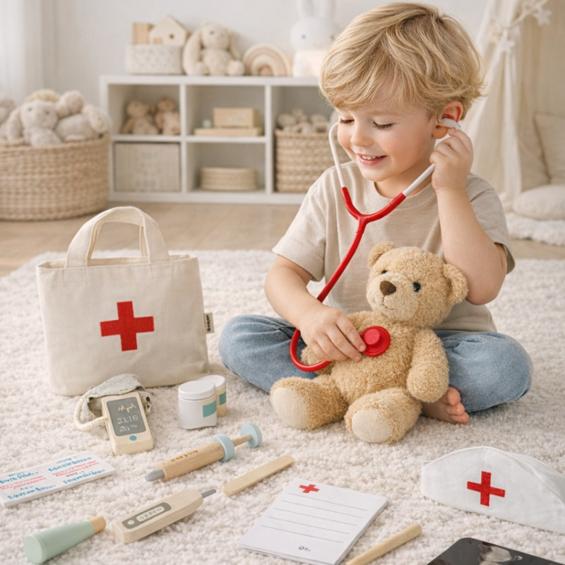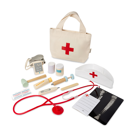 Настоящий доктор всегда готов помочь! В яркой сумочке малыш найдёт всё необходимое для игры в больницу: стетоскоп, шприц, градусник и другие медицинские инструменты. Деревянные детали приятные на ощупь и безопасные для детей от 3 лет. Игра развивает воображение, учит заботиться о других и помогает побороть страх перед врачами. Компактная сумочка позволяет брать набор с собой в гости или на дачу.