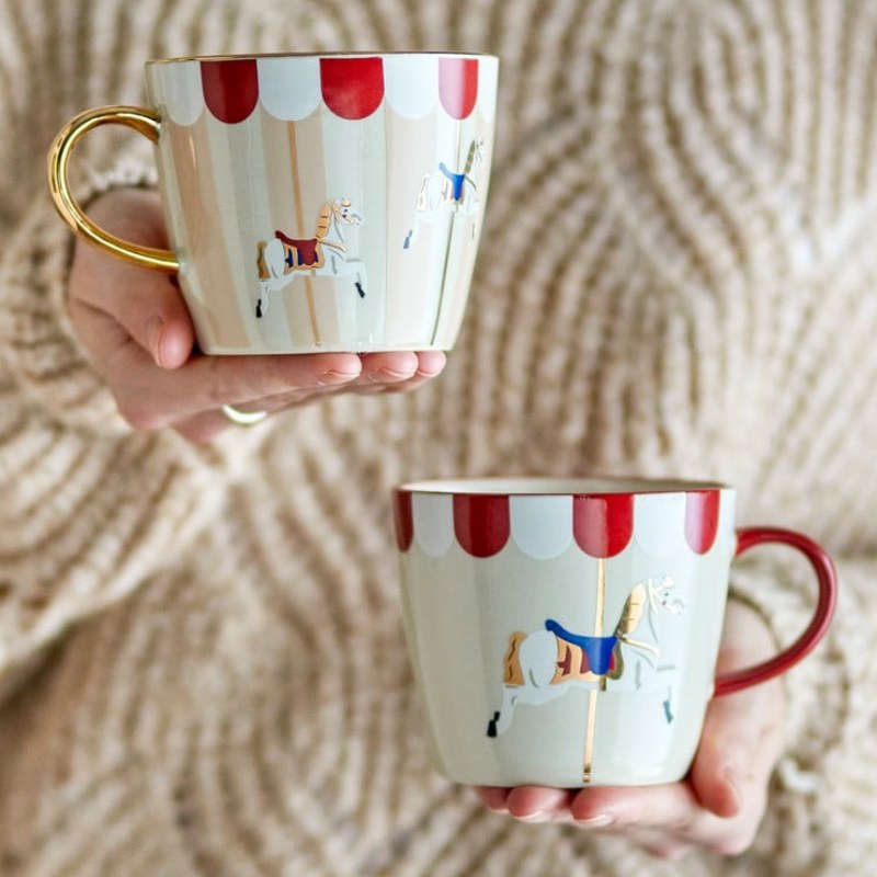 Пара кружек оформлена в кремовом тоне с аккуратными красными деталями, создающими атмосферу праздничного сезона. Благодаря простой форме ими удобно пользоваться ежедневно, а гармоничное оформление позволяет комбинировать их с другой посудой. Такой набор подойдёт как для личного использования, так и в качестве небольшого подарка.