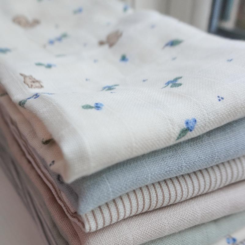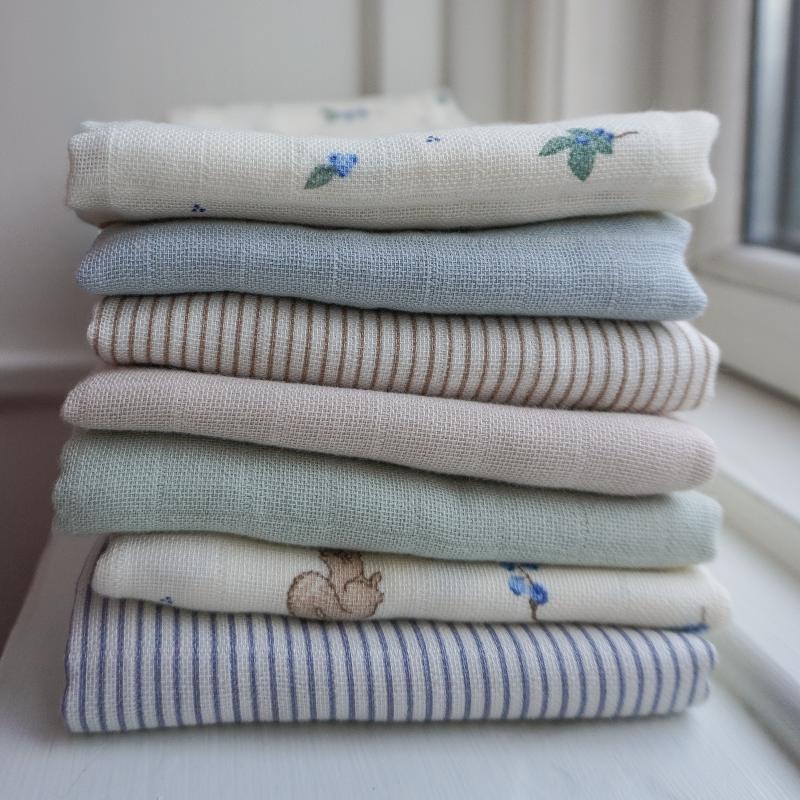Муслиновые пелёнки с черникой в наборе из двух штук. Голубые акценты добавляют свежести, ткань лёгкая и воздушная. Муслин обеспечивает терморегуляцию и быстро сохнет после стирки. Пелёнки универсальны: можно использовать для пеленания, как покрывало в коляску, подстилку на пеленальный столик или салфетку. Органический хлопок не вызывает раздражений. Две пелёнки — это практичный минимум для повседневного использования.